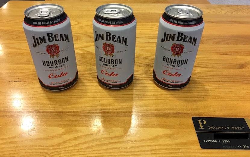 I reviewed the menu and wasn't in the mood for any more food, but saw the large cooler full of beer, wine and liquor behind the cashier. I asked how much three bourbon and coke cans would cost. She replied "$12 each" which, conveniently is a nice even factor of 36. The cashier laughed as she pulled out the Priority Pass machine and gave me compliments on maximizing the $36 limit. I put the cans in my bag to enjoy later in the evening and headed off to the Qantas Business Lounge.