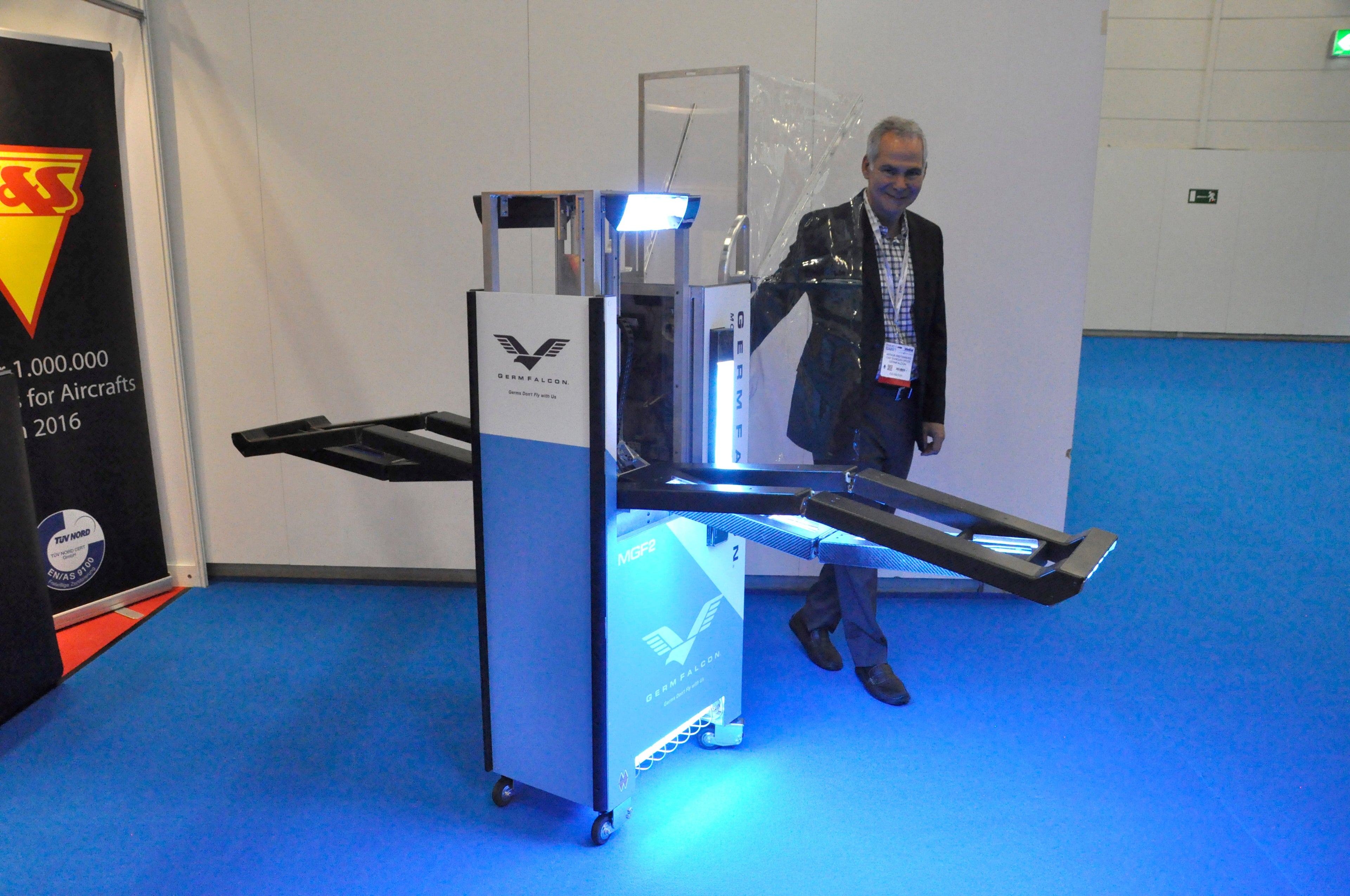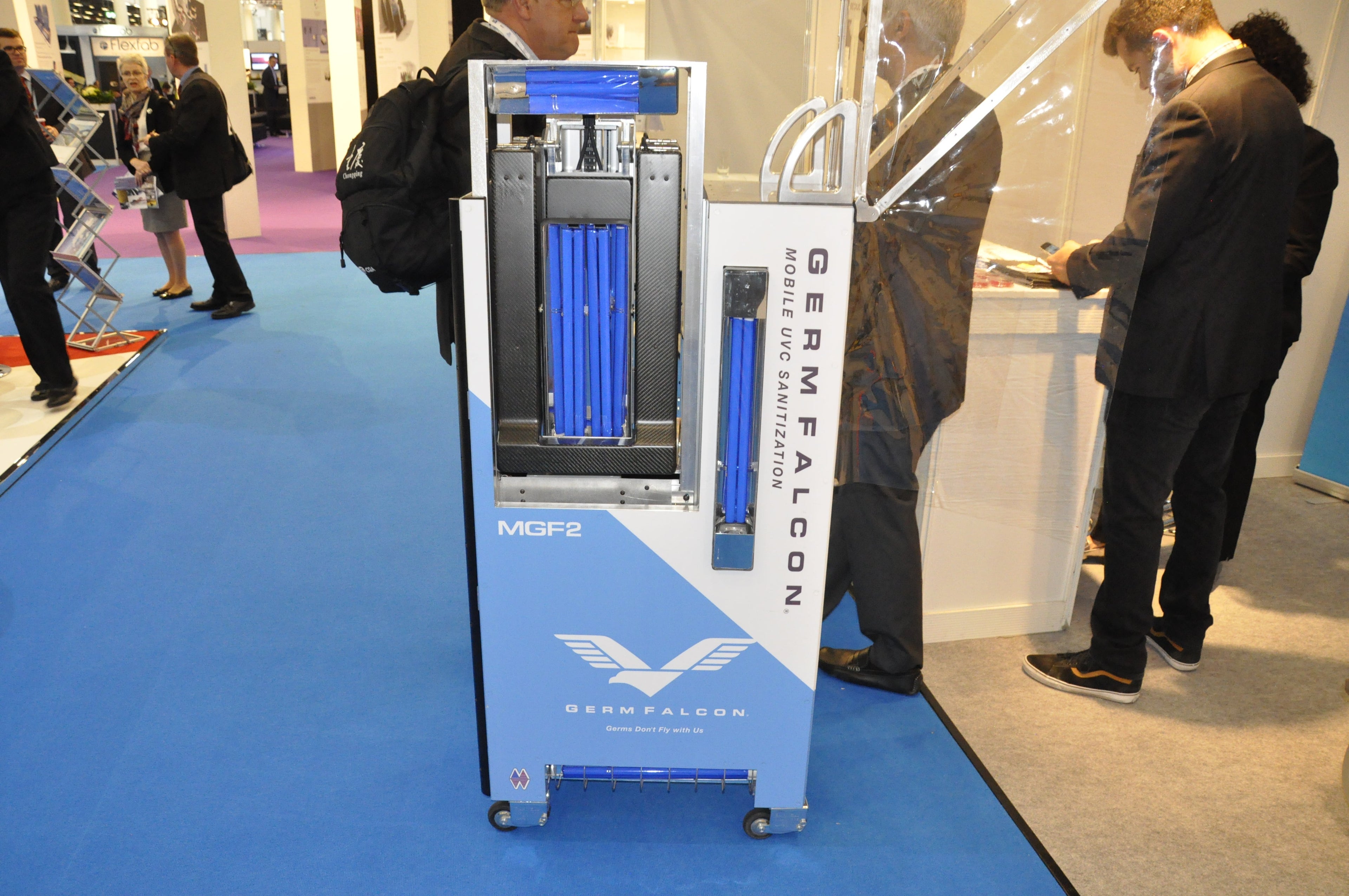 I met the creator of the "GermFalcon" at this year's Aircraft Interiors Expo (AIX) in Hamburg, Germany. The product was nominated for a prestigious Crystal Cabin Award at AIX, and I knew I had to check it out when I heard about it.
