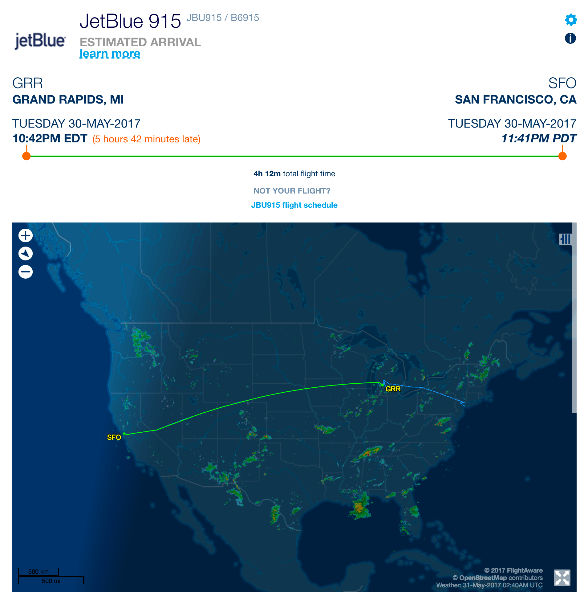 The plane landed safely in Grand Rapids, MI (GRR), where fire crews met the aircraft and took the burnt backpack off the plane. Thankfully, none of the 158 passengers on board were injured, and the plane wasn't damaged as a result of the fire. The aircraft was on the ground in Grand Rapids for about 3 hours before continuing its journey to San Francisco.