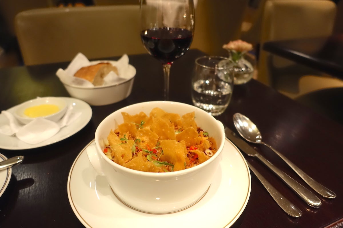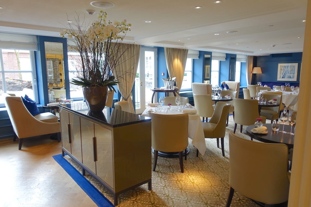 The hotel's flagship restaurant is chef Sidney Schutte's two-Michelin-starred Librije's Zusje Amsterdam, which is only open for dinner. That wasn't quite in my budget, but the same chef also creates the menus for Goldfinch Brasserie, which is laid out with a sort of open plan on the ground floor. That's actually a level below the lobby (which is up a set of stairs from the street), so its location gives you a nice view of the garden. Goldfinch is separated from the corridor to the elevators and the restaurant by large screens embroidered with — what else? — goldfinches. It doesn't quite look like a dining room, but rather as though the hotel planners didn't have anywhere else to put it. That said, the seating was comfortable and the service was impeccable, though I was one of only three tables being served that evening.