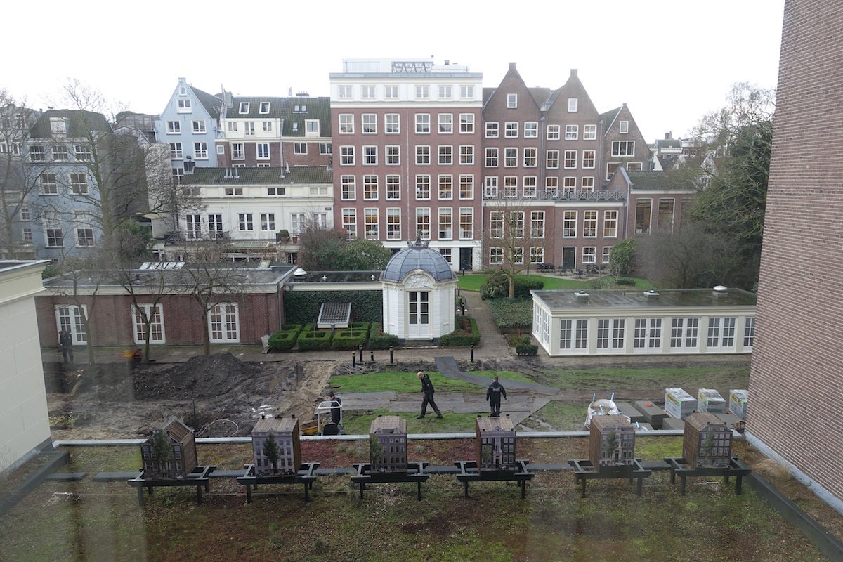 My room was also in the block of that category that looked out onto the back garden rather than the Herengracht. Ordinarily, that would have been a good thing — less noise and hustle on the streets outside, but because the hotel was replanting the garden, all I got was a view of the mud, along with an apologetic letter explaining what was going on.