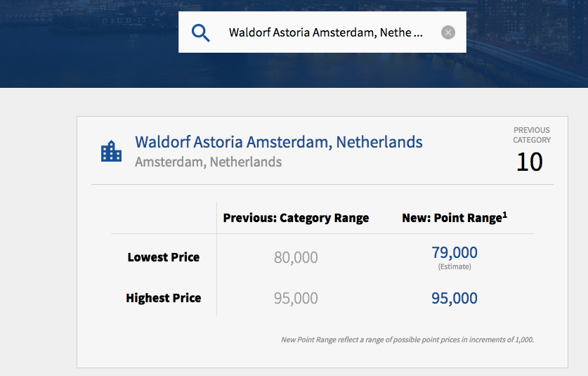 With the new Hilton Honors program, award rates are a bit more dynamic. When I recently checked Hilton's points calculator page (pictured above), award rates at the property averaged about 79,000 points per night on the low end and up to 95,000 at peak times, so there's not much of a change here yet anyway.
