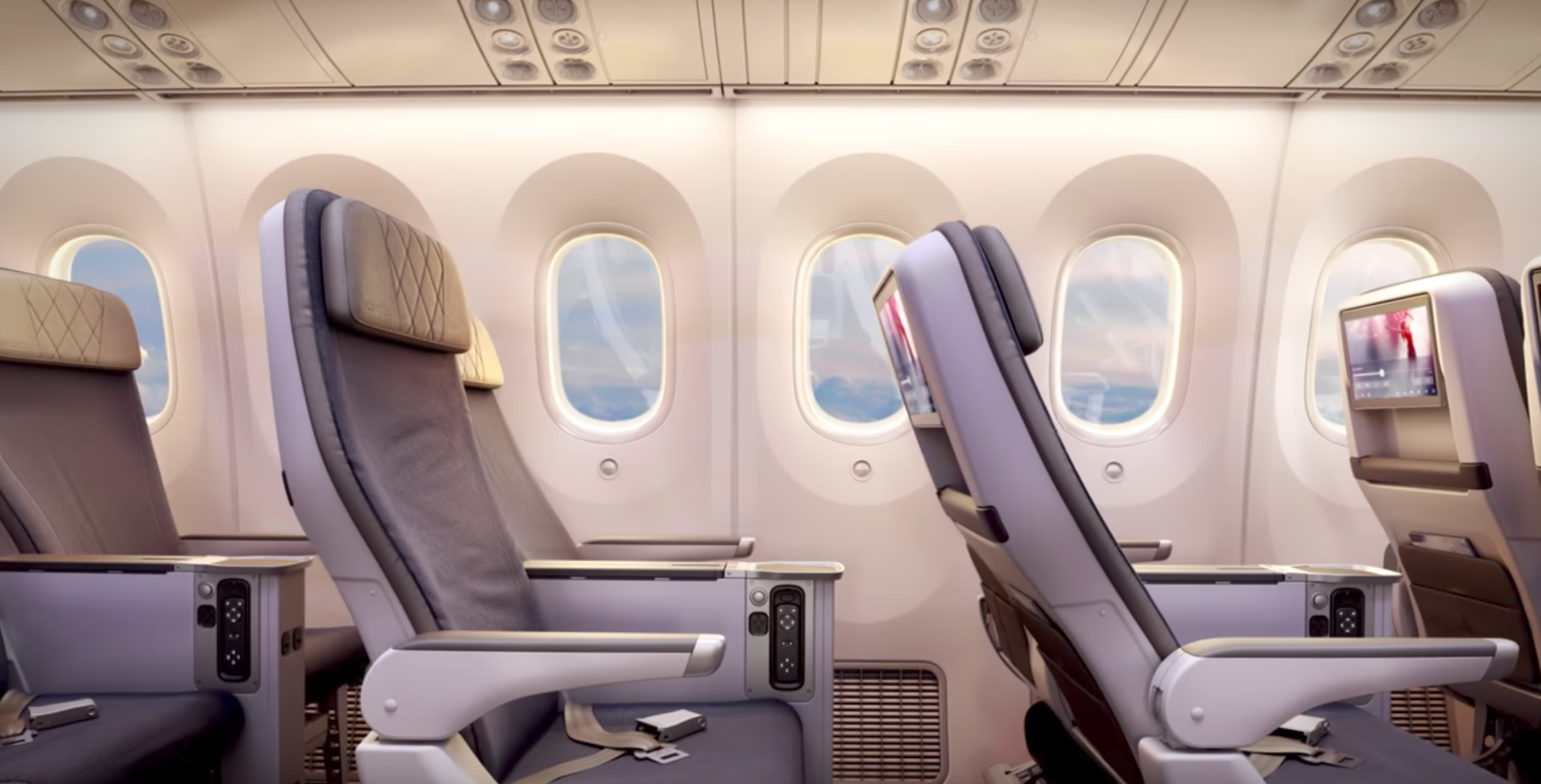 Each premium economy seat will feature large IFE screens, access to power and 38 inches of pitch.