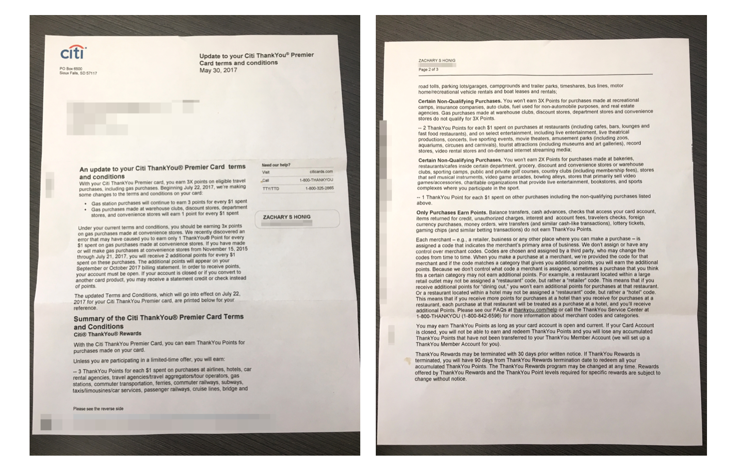 This change isn't drastic enough to alter the value of the card — there are still plenty of fantastic ThankYou point-earning opportunities to take advantage of. In this letter, Citi also detailed that an error caused some gas purchases made at convenience stores between November 15, 2015, and now to earn just 1x point. During that time, if you made (or will make) a gas purchase at a convenience store through July 21, 2017, you'll receive an additional 2x points for every dollar spent. The additional points will post on your September or October 2017 statement.