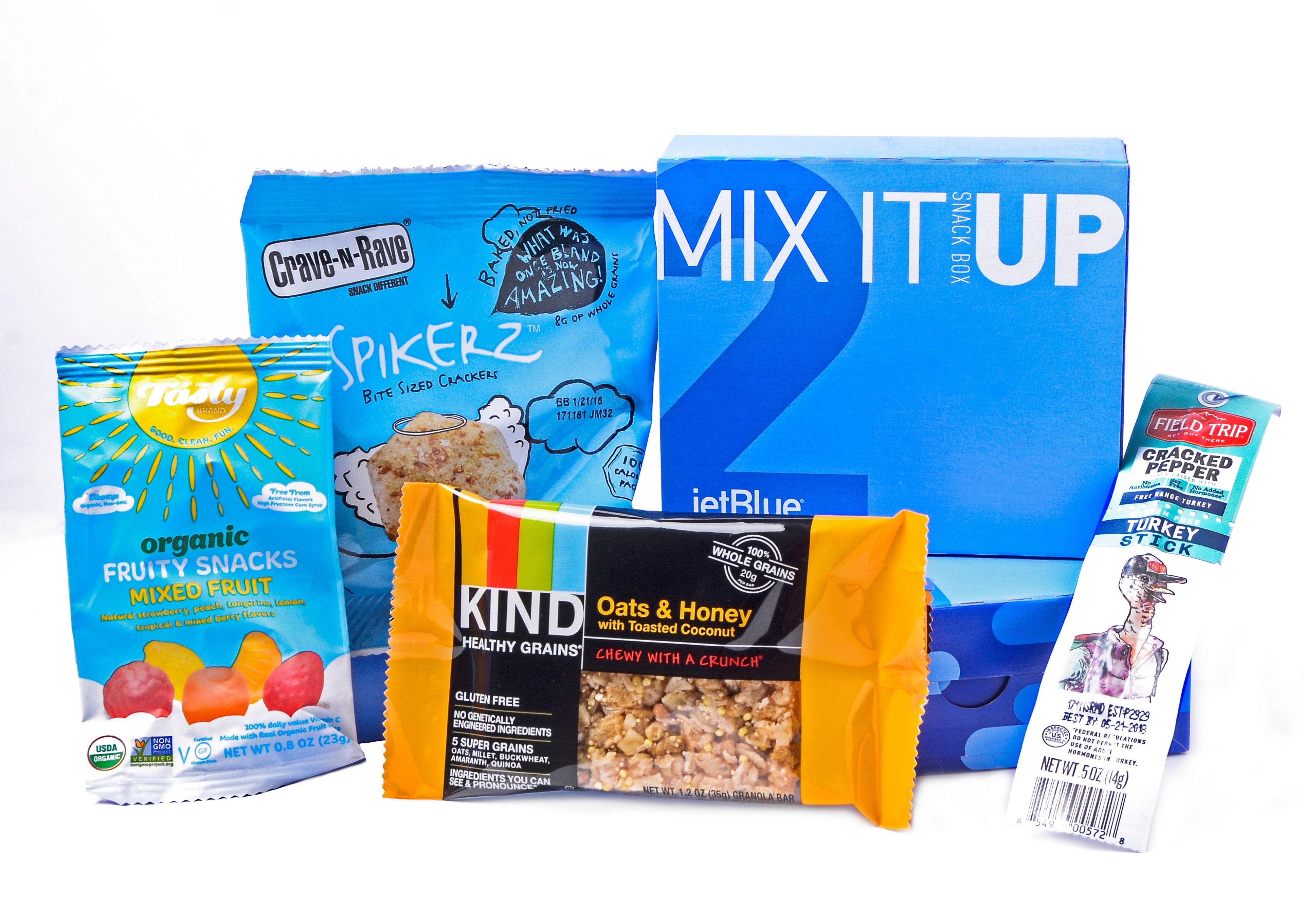 In addition to these four new boxes, JetBlue will continue to offer its "cheesy" PickMeUp box. In that $7 box, you'll get a trio of cheese: garden vegetable, sharp cheddar and gruyere, as well as dried cherries and crackers. Plus, if you're not interesting in paying for a snack box and would rather stick with the free stuff, JetBlue will continue to offer its complimentary brand-name snack options on board.