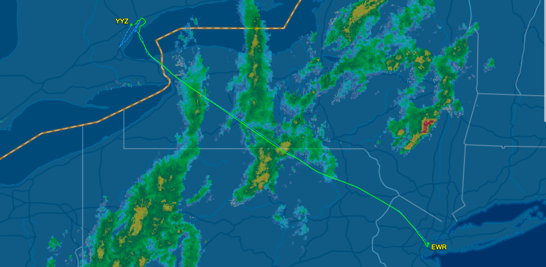 According to Sam, the gate agent started the bidding at $2,000 worth of United travel vouchers for the one seat, but there were no takers (madness!). United then offered up a seat on an alternative flight, which would arrive three hours later and require a connection in Syracuse (SYR) before continuing to YYZ. The gate agent offered the $2,000 twice at the gate and both times, no one jumped at the generous amount. (Presumably, there were a lot of businesspeople on board who needed to get to Toronto quickly.)