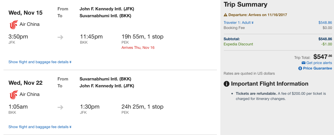 New York (JFK) to Bangkok (BKK) for $548 round-trip: