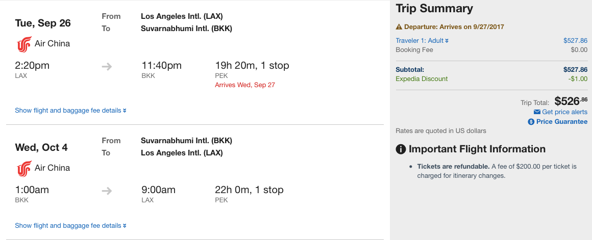 Los Angeles (LAX) to Bangkok (BKK) for $527 round-trip: