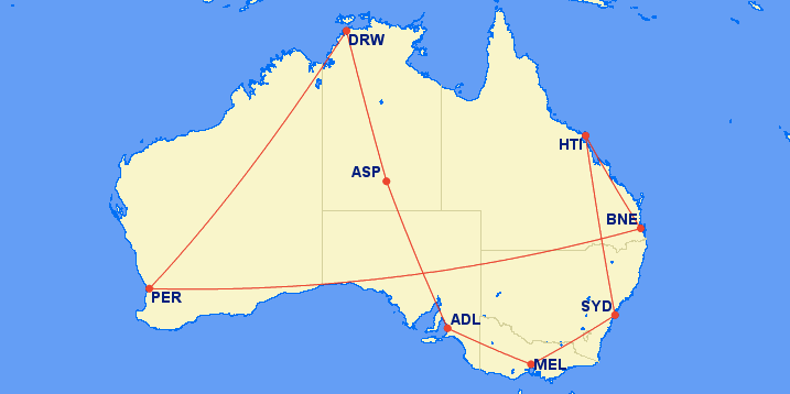 - Adelaide (ADL) to Alice Springs (ASP): November 17, 6,900 miles