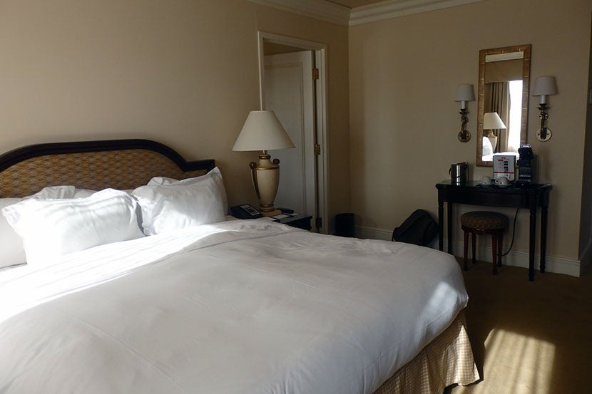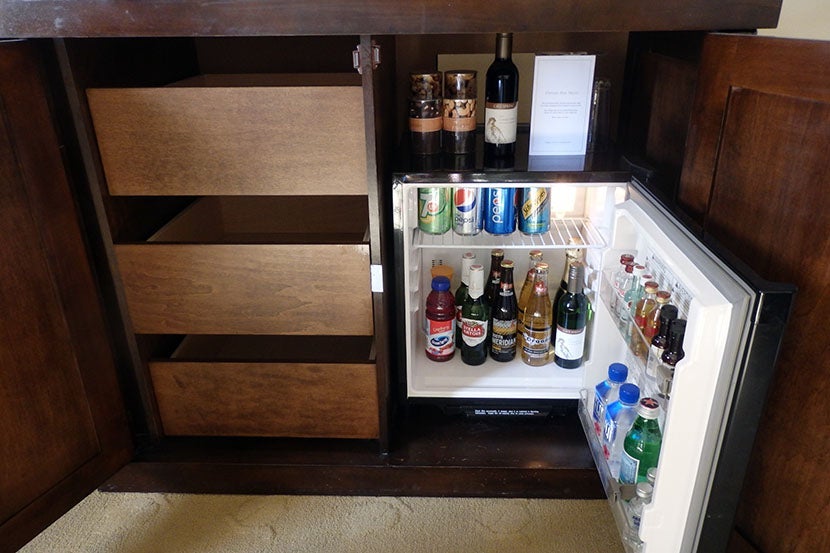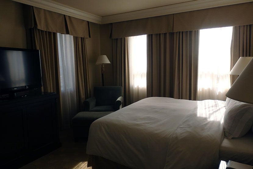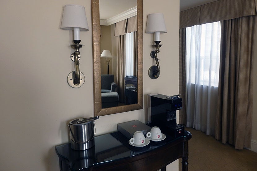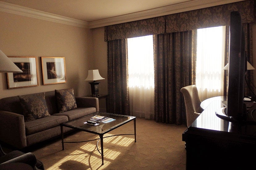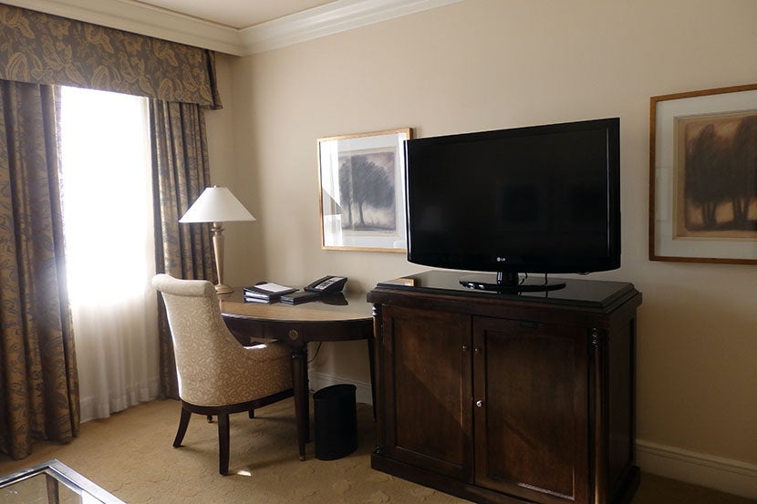 Although I'm a big fan of having a separate work space (and I especially liked that the desk was spacious enough for multiple computers), the room seemed to have an awkward layout. There were no — as in zero — outlets near the desk, and the closest outlet was directly behind the armoire (with the TV and minibar). The outlets near the couch did accommodate multiple chargers, but this was annoying and meant having to remember to charge electronics away from where I was using them. Lesson learned: always travel with a power brick.