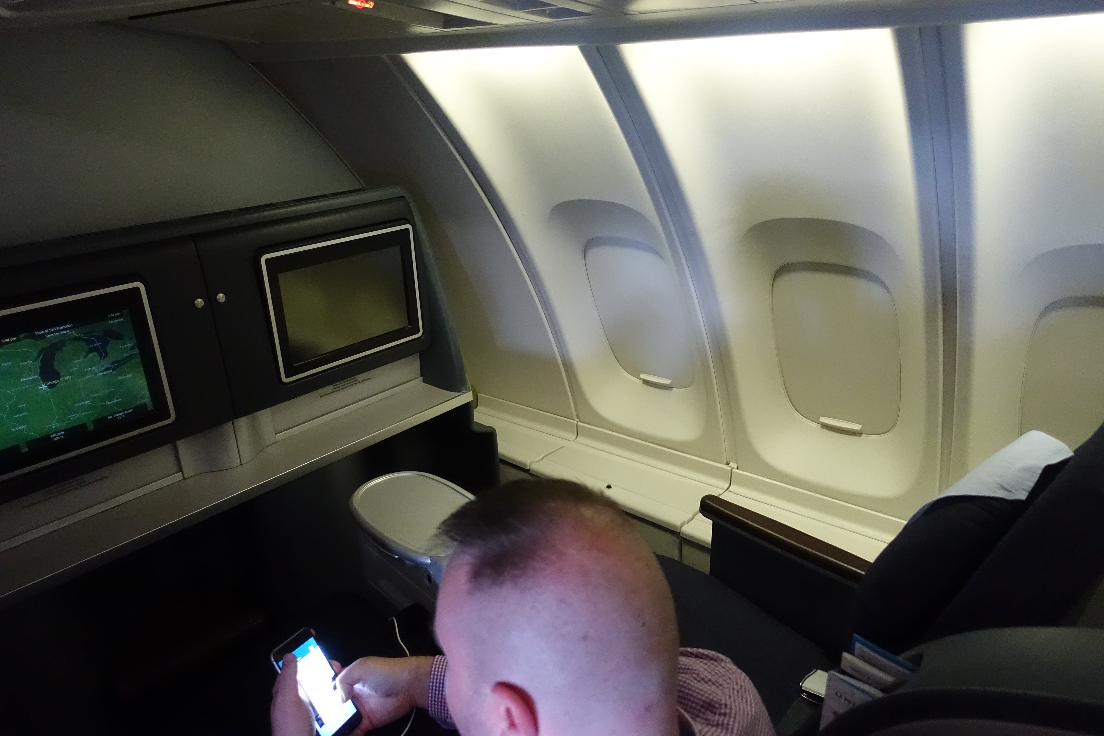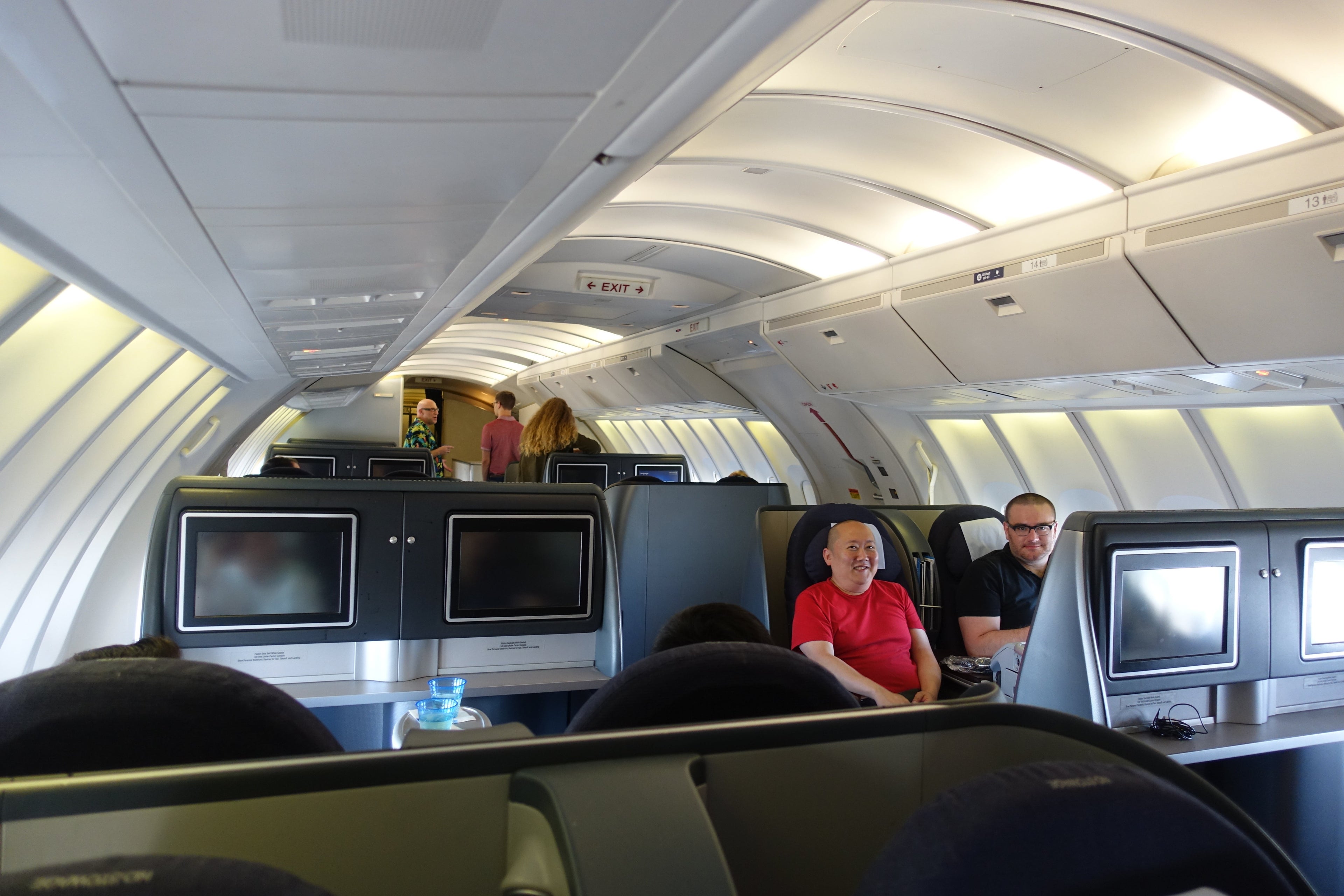 It's funny — in its heyday, the 747's upper deck was often used as a lounge. Last night, even with regular business-class seats, it really felt like one.