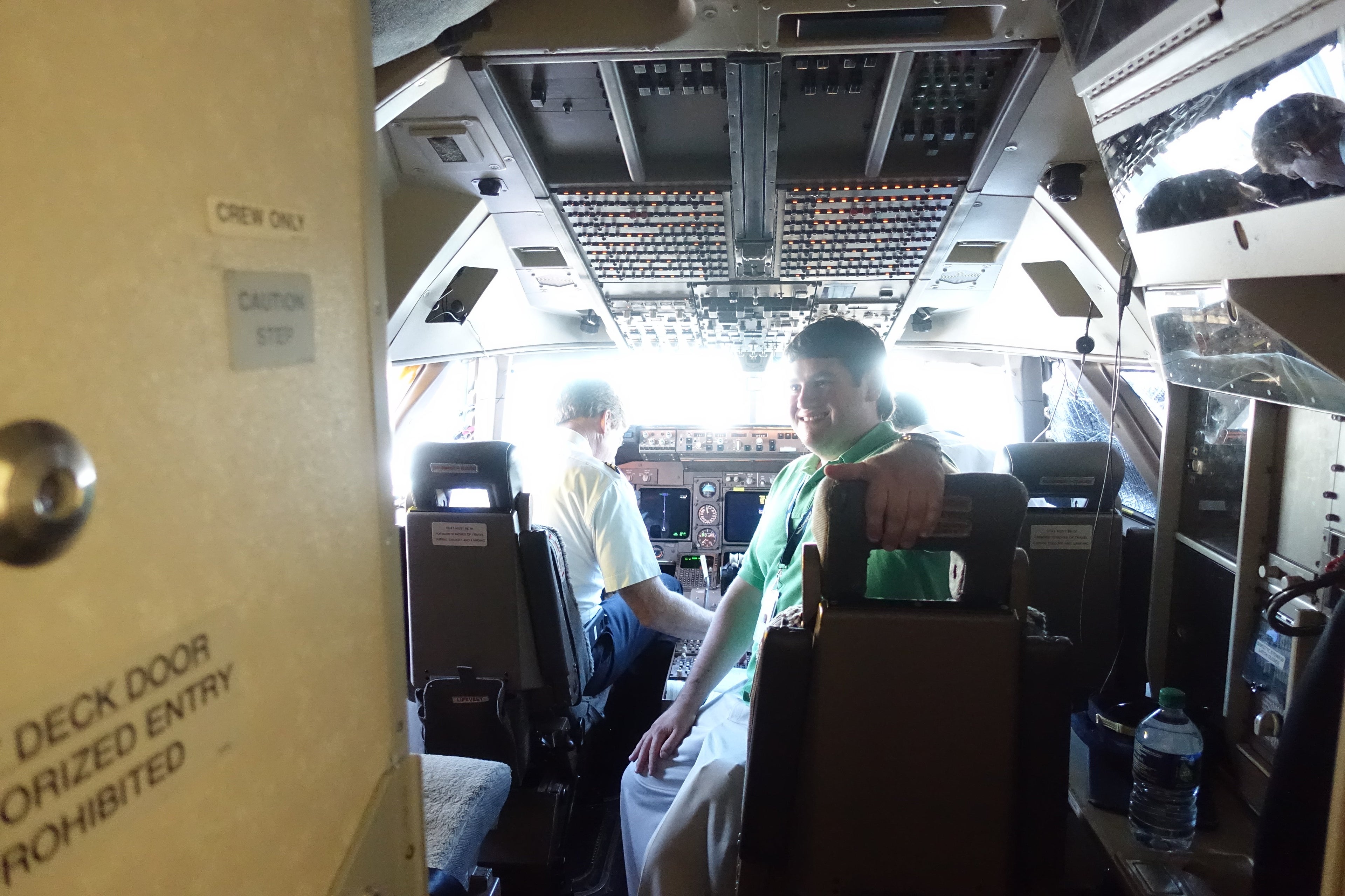 When I made my way in, I could hear the captain and first officer testing some of the ground proximity alert systems, while another pilot took my photo in the jump seat.