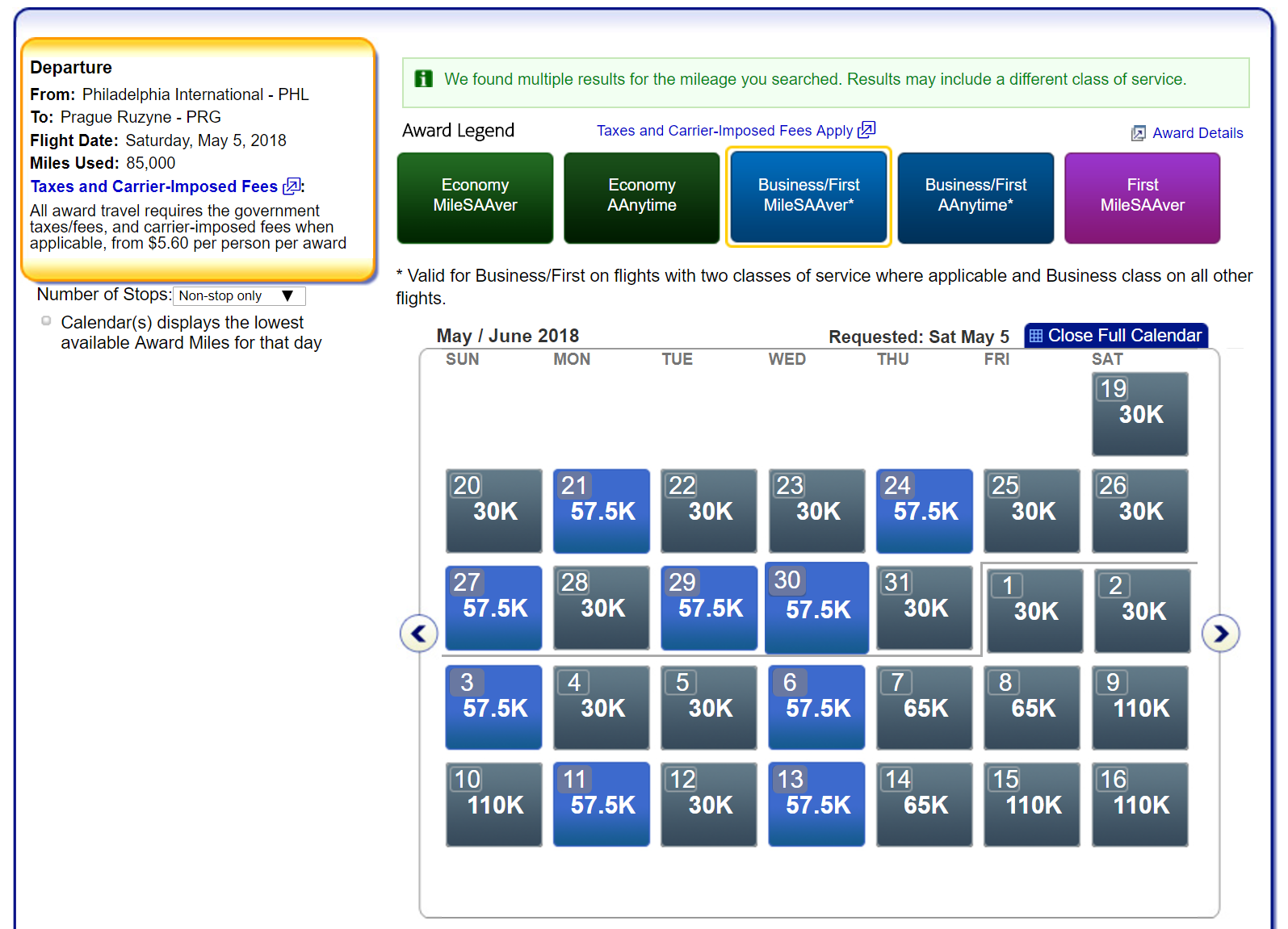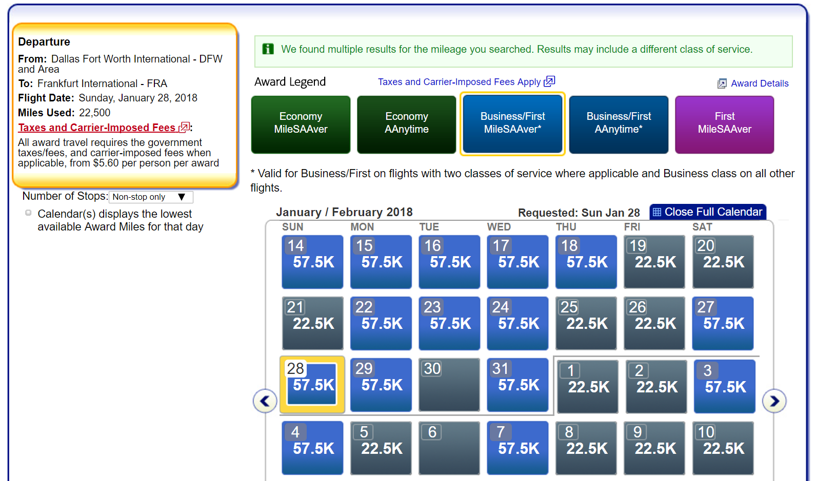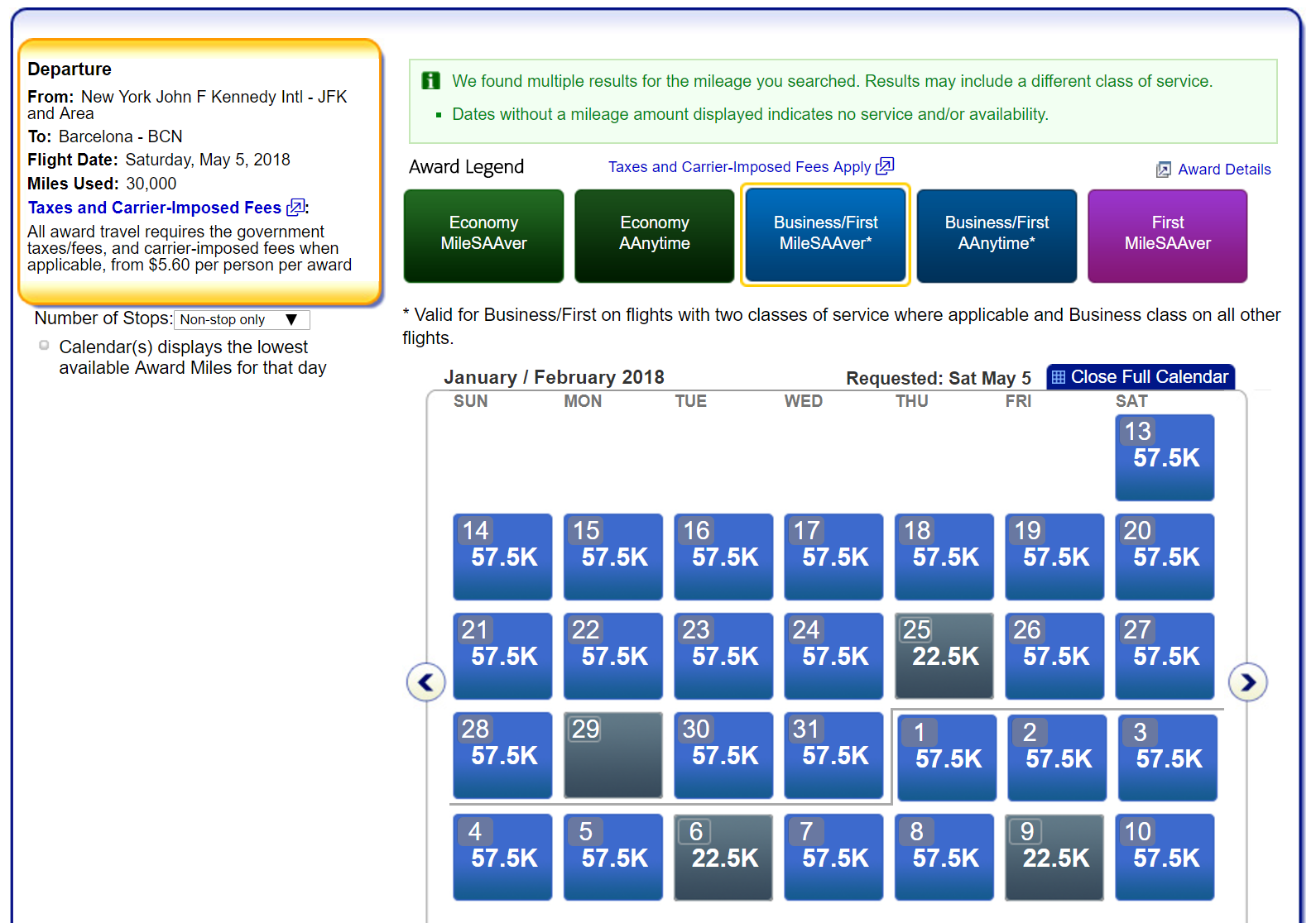 Even better, AAdvantage charges just 57,500 miles one-way in business class to/from Europe. And, since it's on American Airlines metal, you won't get saddled with the terrible British Airways fuel surcharges that are commonplace for AAdvantage awards to Europe.