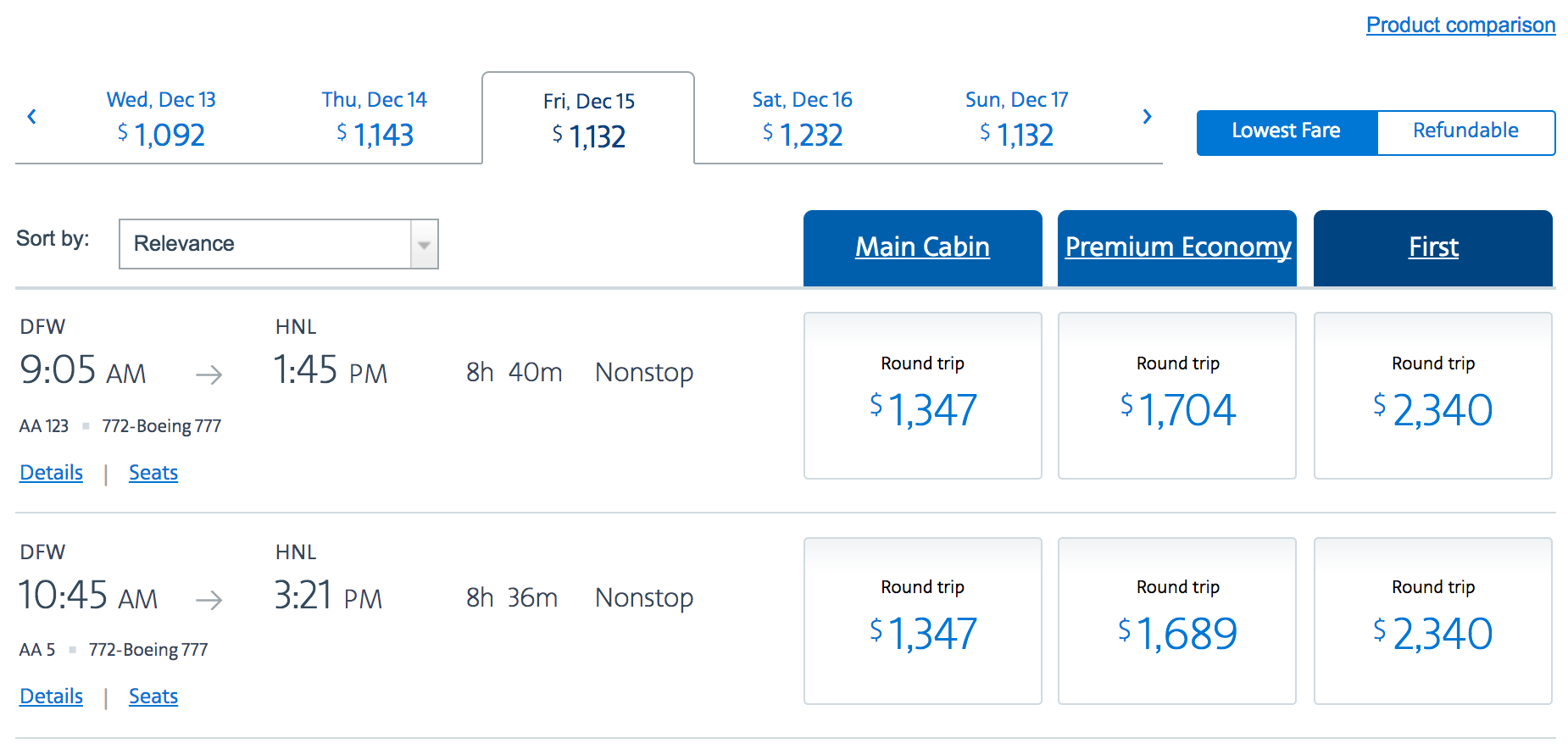 On the inaugural premium economy flight between DFW and HNL, you can purchase a round-trip ticket for as low as $1,689 as of this writing.