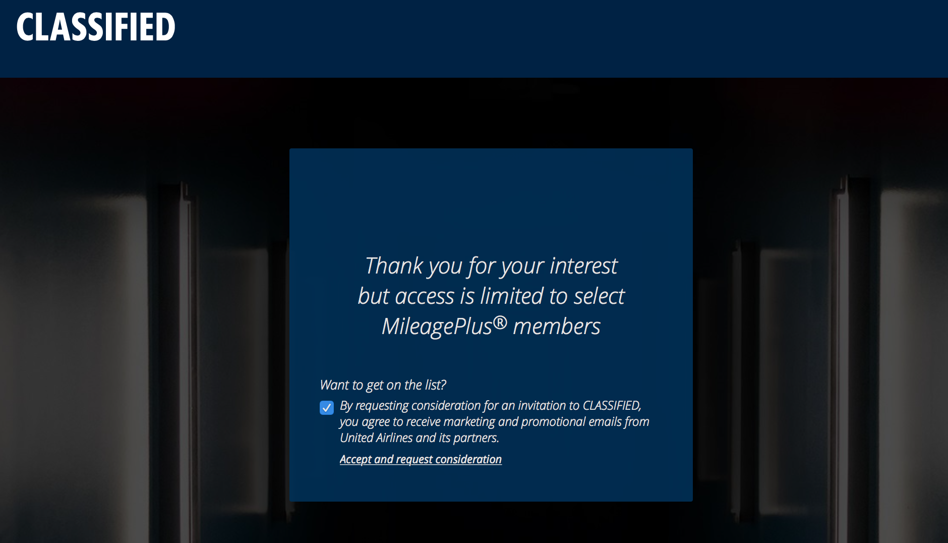 But no, I wasn't preselected, even though I'm now a million miler and a Premier 1K member with United. I clicked to register my interest earlier Monday, but have yet to receive an email confirmation or invite — with the restaurant not yet open, perhaps it'll take a few days, assuming I'm deemed worthy of the Classified experience.