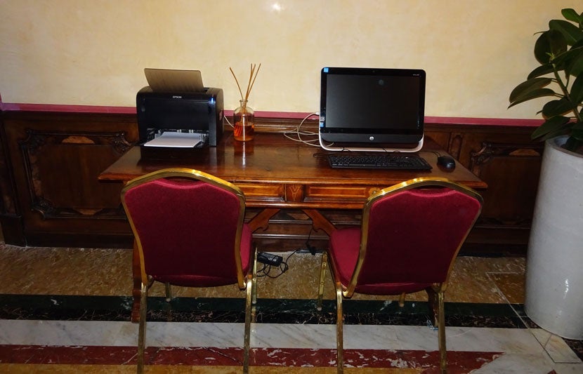 Adjacent to the lobby was a small business center with a computer and a printer.