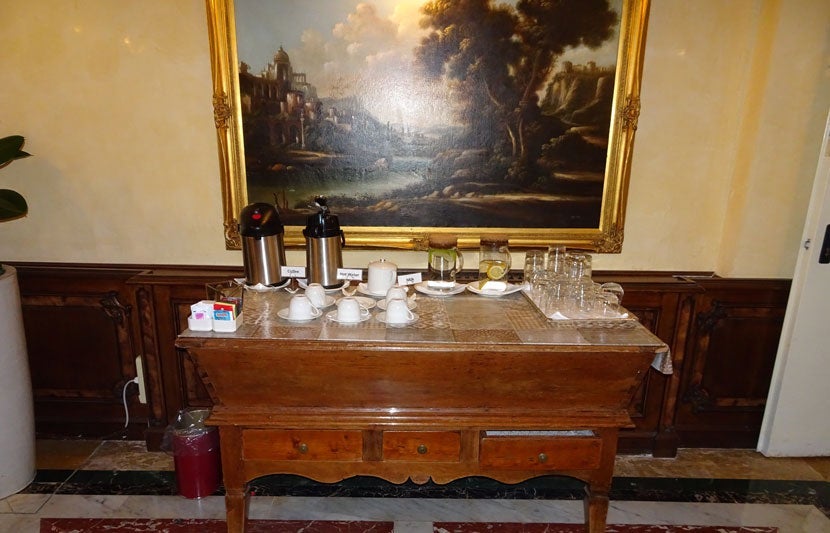 To the side of the lobby was a table offering hot and cold refreshments throughout the day.