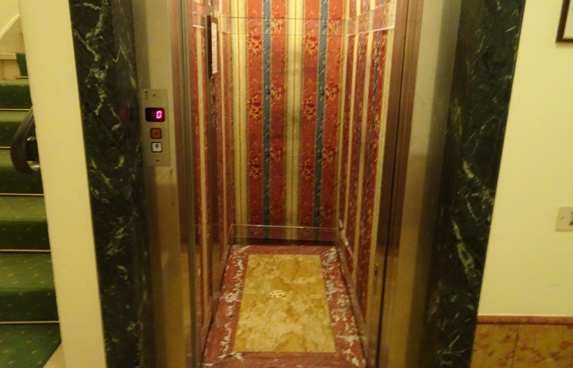 There were two small elevators, one on each side of the lobby. The small size was inconvenient, especially with luggage, and if additional guests wanted to go up, it was a tight squeeze. On the other hand, the stairs to the side of the elevator were always available for use.