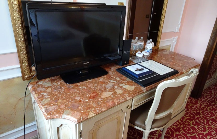 There was a Phillips TV provided with channels in multiple languages. It was placed on the desk, probably because of the limited space available in the room.