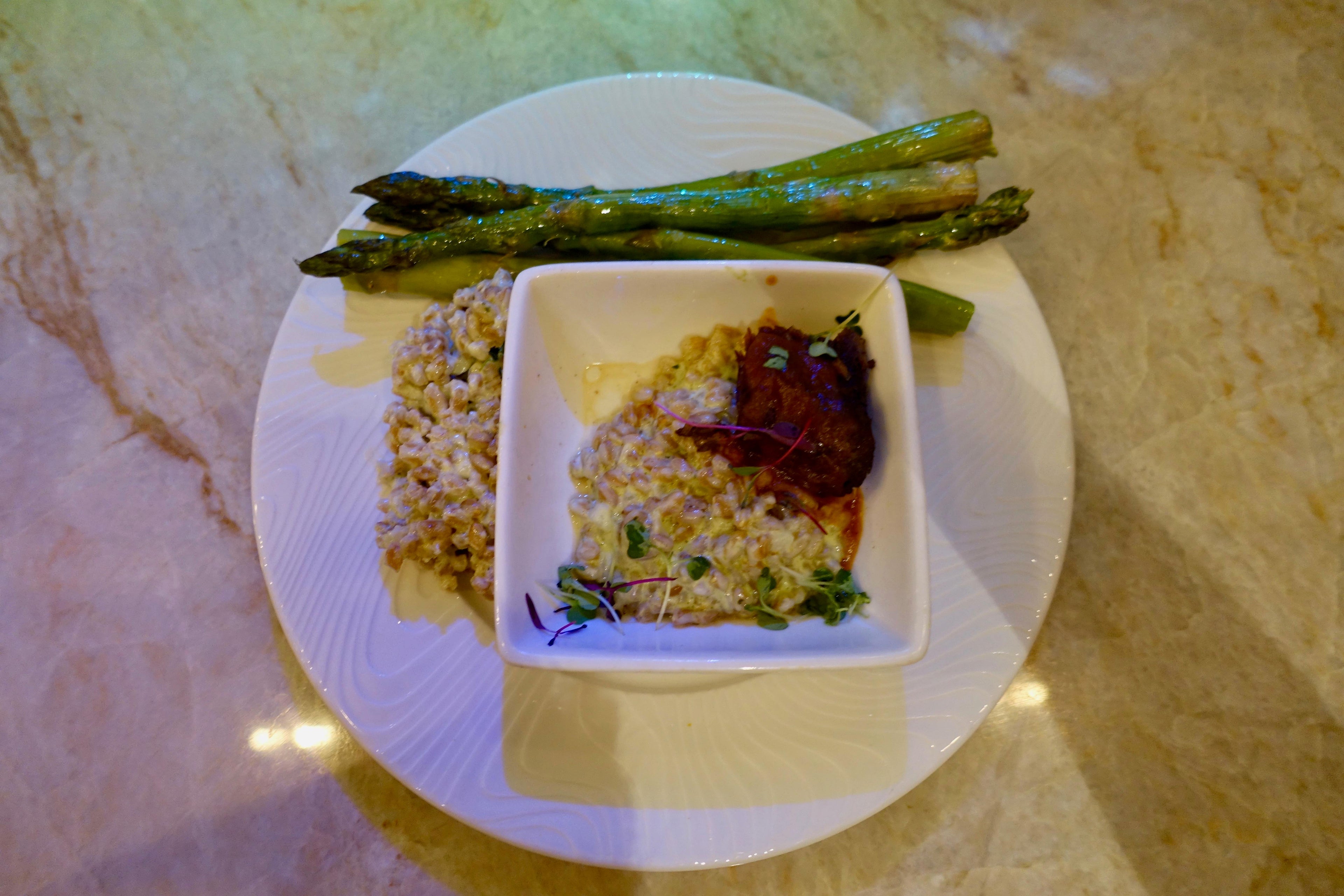 The main dishes included braised short ribs, green farro salad and roasted asapargus.