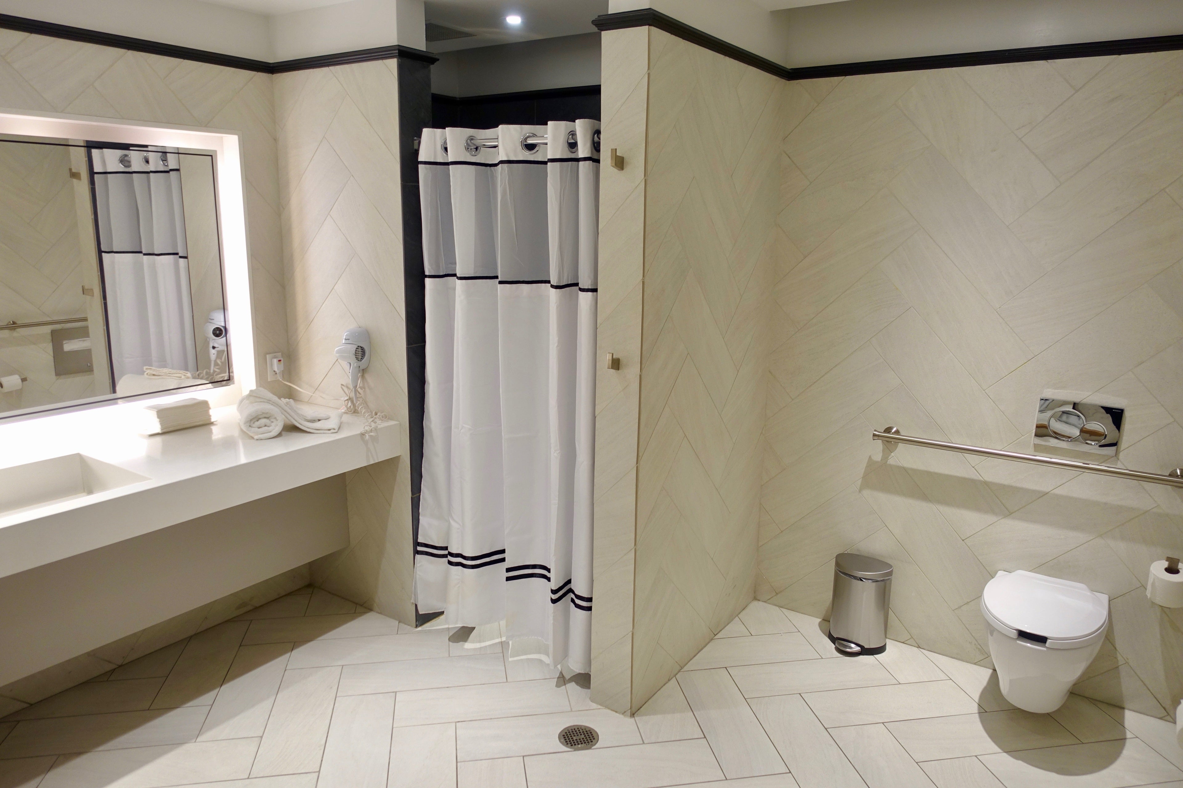 Here's a look at the whole shower room, with plenty of room to freshen up.