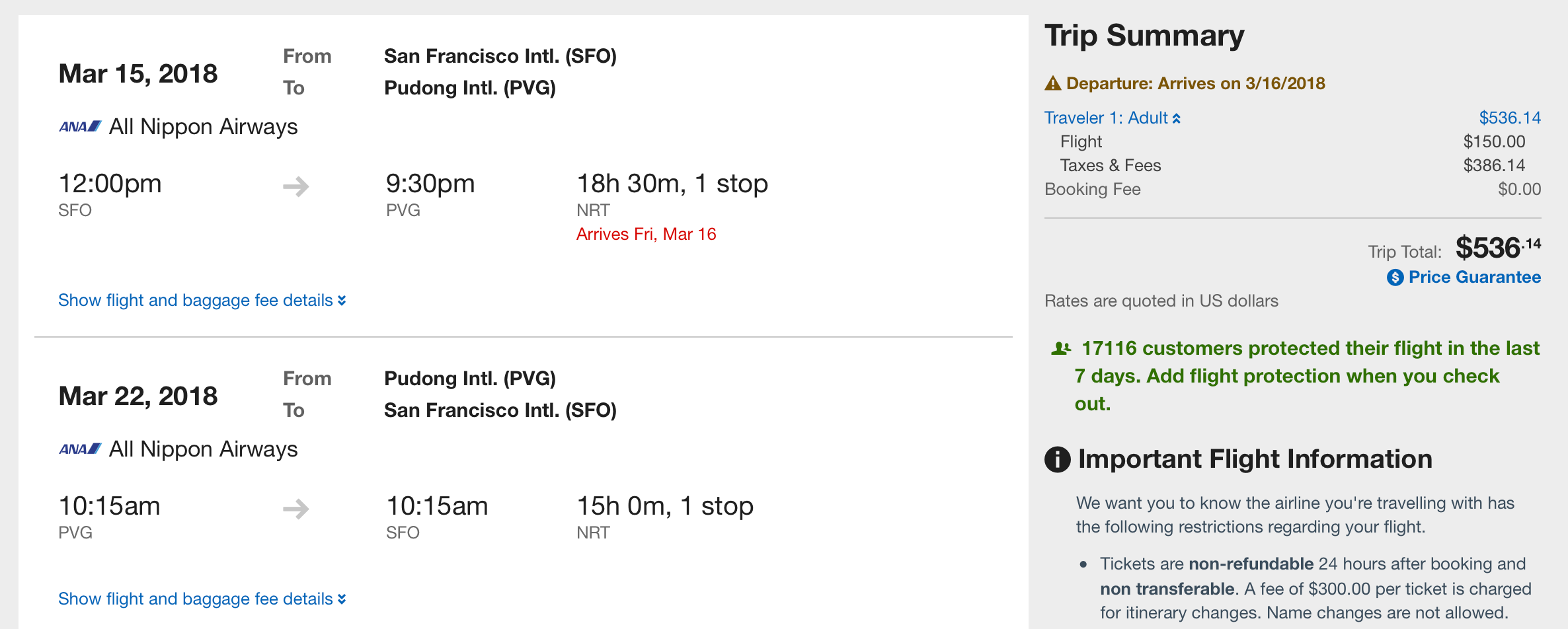San Francisco (SFO) to Shanghai (PVG) for $536 round-trip on ANA via Orbitz: