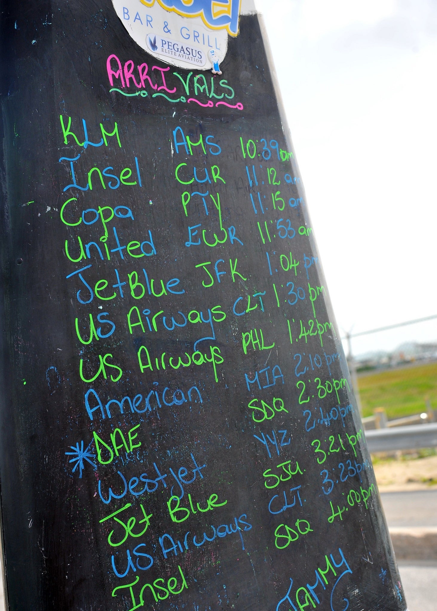 Every day, the Sunset's staff would write the expected arrivals on a surf board propped up in the sand. Photographing the board was another AvGeek ritual. Clearly, whoever was in charge of the task was enough of an aviation nerd to only write down the big jet arrivals, ignoring the smaller, island-hopping turboprops that, while vital for the islanders' everyday life, were nobody's reason for flying this far with an arsenal of cameras.