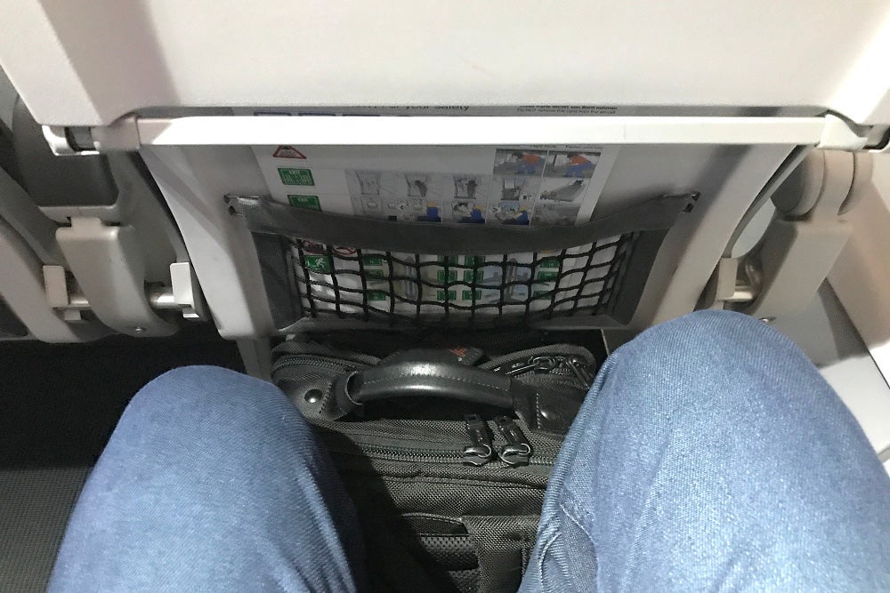 The flight boarded about 20 minutes late, but they still managed to close the door on time. I found the A320 cabin to be quite comfy — comparable to what you'd find on full-service European carriers, with leather slimline seats.