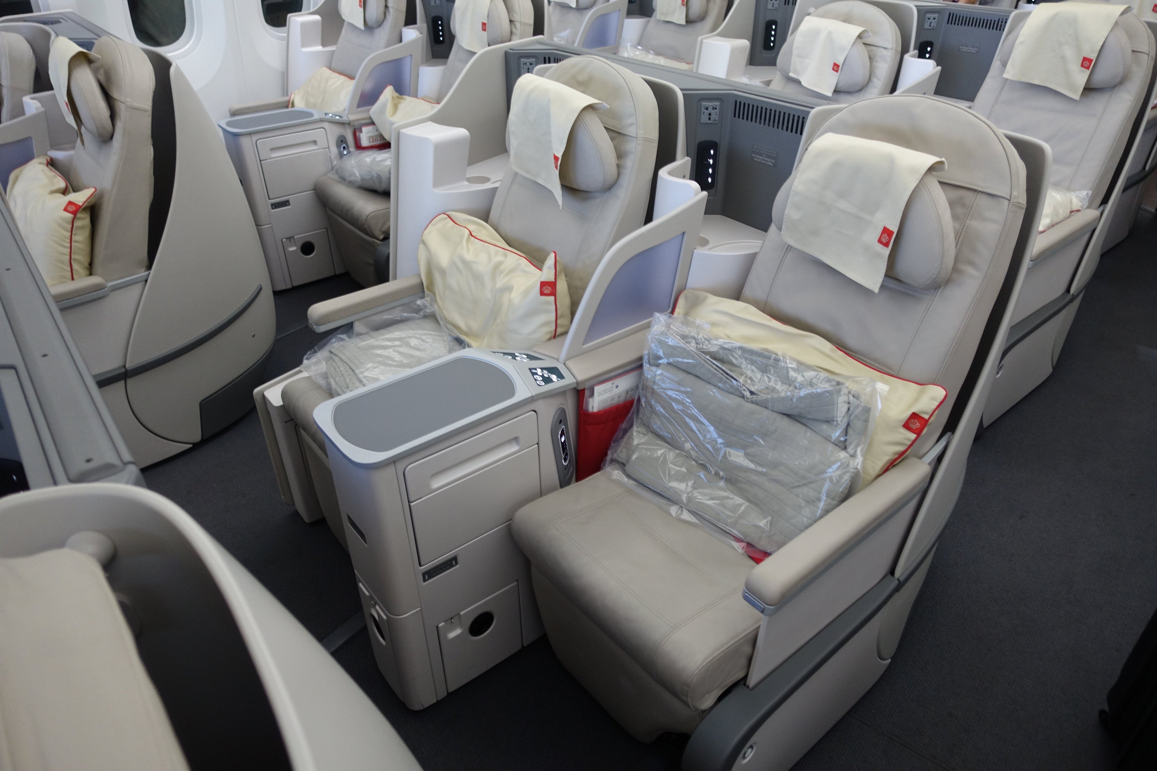 RJ's Dreamliners feature 24 lie-flat seats in business in a 2-2-2 configuration and 246 seats in economy in a 3-3-3 configuration.