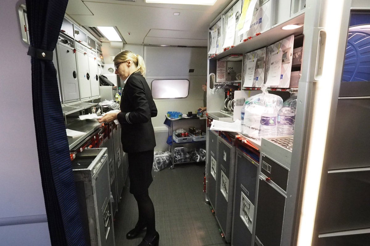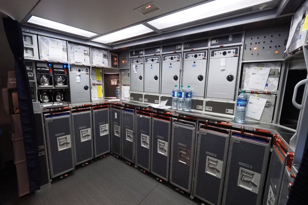 The galleys are largely unchanged as well — below is the business-class galley up front.