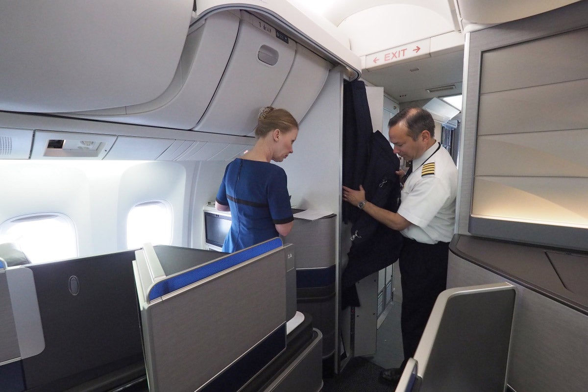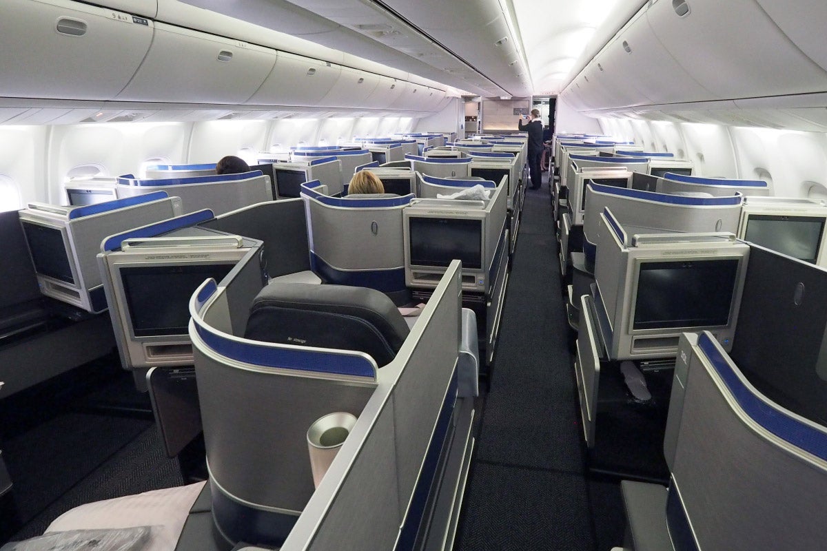 The 1-1-1 arrangement means all passengers have direct access to the aisle — especially important with most passengers choosing to get some shut-eye on redeye flights to Europe.