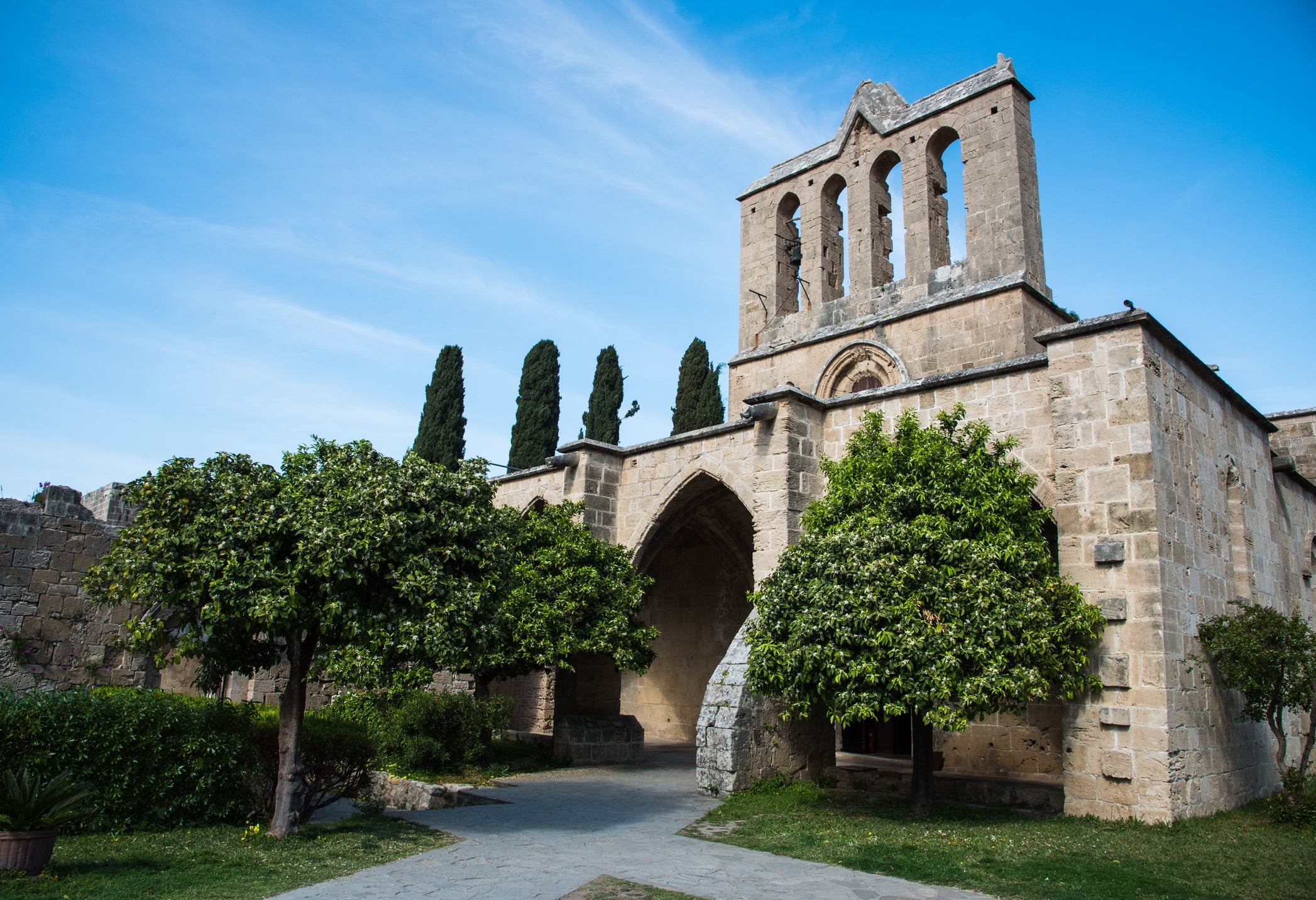 Cyprus's strategic location put it in the path of the Crusaders, and subsequent European occupiers left real architectural gems behind. One of the most famous sites is the ruined 13th-century monastery of Bellapais Abbey, with its commanding view of the northern coast. Writing in 1957, when Cyprus belonged to the British, Lawrence Durrell said "the full magnificence of the Abbey's position is not clear until one enters the inner cloister, through a superb gate decorated with marble coats of arms, and walks to the very edge of the high bluff on which it stands, the refectory windows framing the plain below with its flowering groves and curling palm trees."