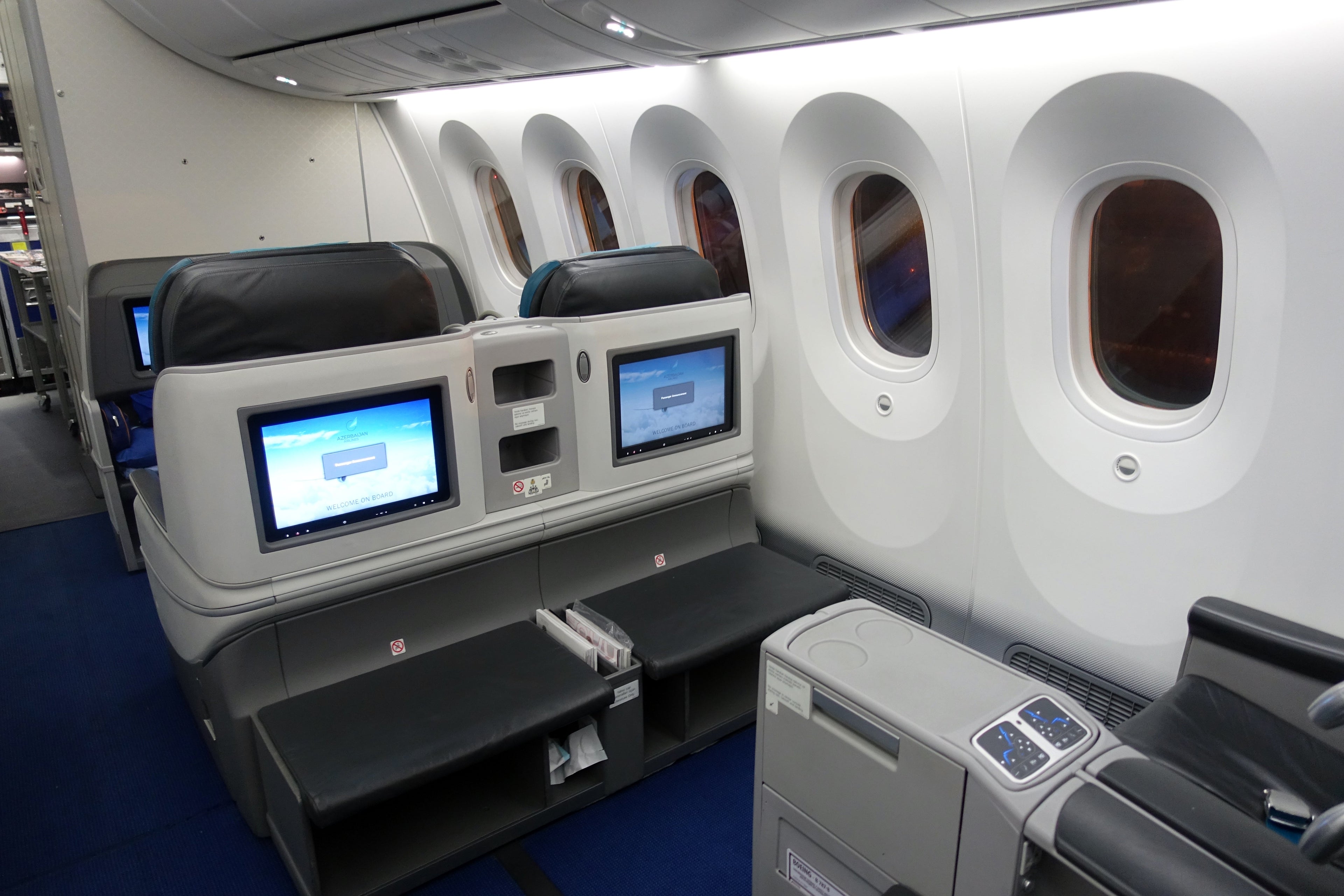 Because the cabin is in a 2-2-2 configuration, not every passenger is granted aisle access. If aisle access is important to you, don't choose a window seat, as you'll be forced to climb over your seatmate in order to access the aisle. Also because of the cabin configuration, there isn't much privacy between you and your seatmate no matter where you're sitting. Each of the armrests pops up slightly so there's a bit more face-to-face privacy — especially when in the lie-flat position.