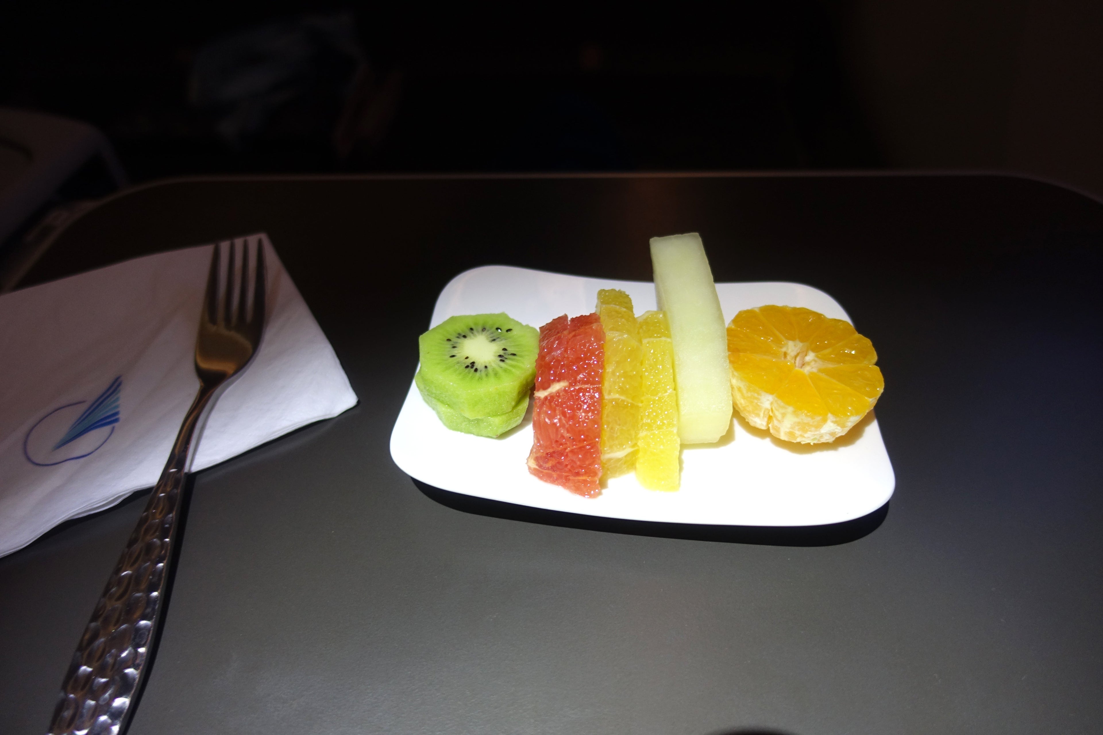 To round out the meal service, each passenger got some fresh fruit. Like the orange juice I had upon boarding, this fruit was also very fresh and a nice way to conclude.