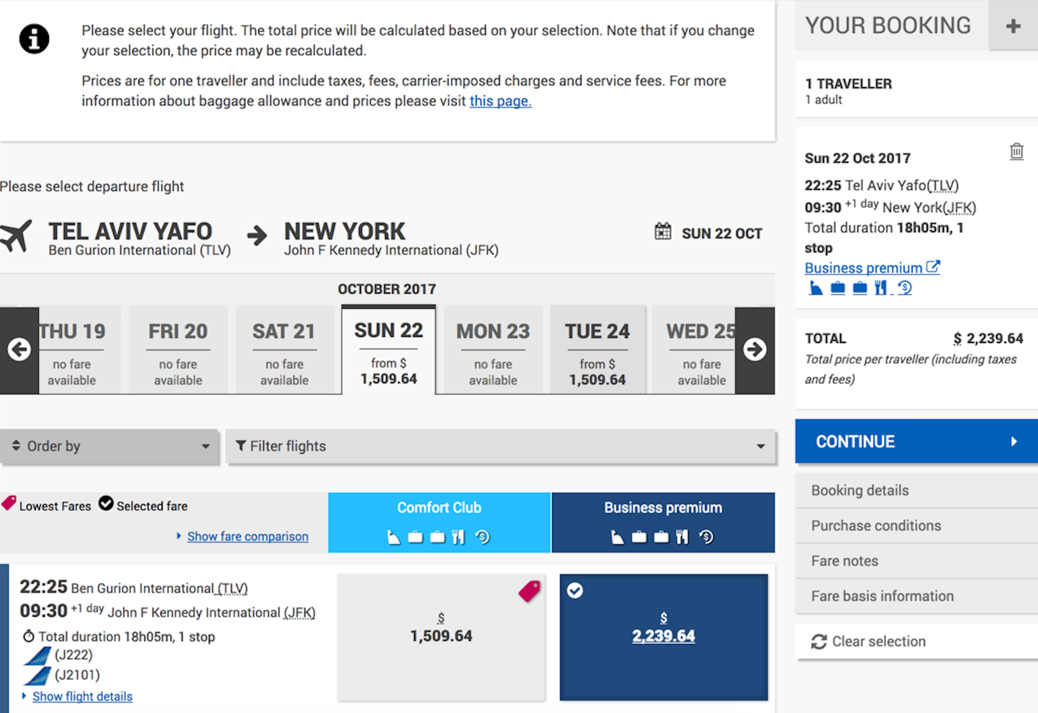 To top it all off, I ended up checking a bag through to JFK from TLV. It was marked with a Priority tag and in good, totally functioning condition when I dropped it off. When I picked it up at baggage claim at JFK, it was indeed one of the first bags off the carousel, but when I got home, I realized that the zipper had been broken. The handle where you pull the zipper was completely gone. I've never had an issue checking a bag as a business-class passenger, and especially with a marked bag, I was surprised to see it damaged. I wrote in to AZAL to complain about the damaged luggage but have yet to hear back.