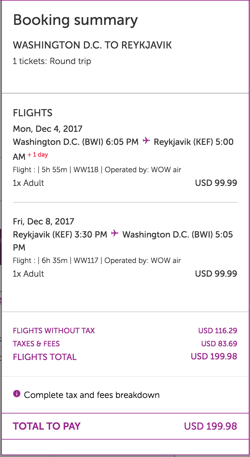 Baltimore (BWI) to Reykjavik (KEF) for $200 round-trip: