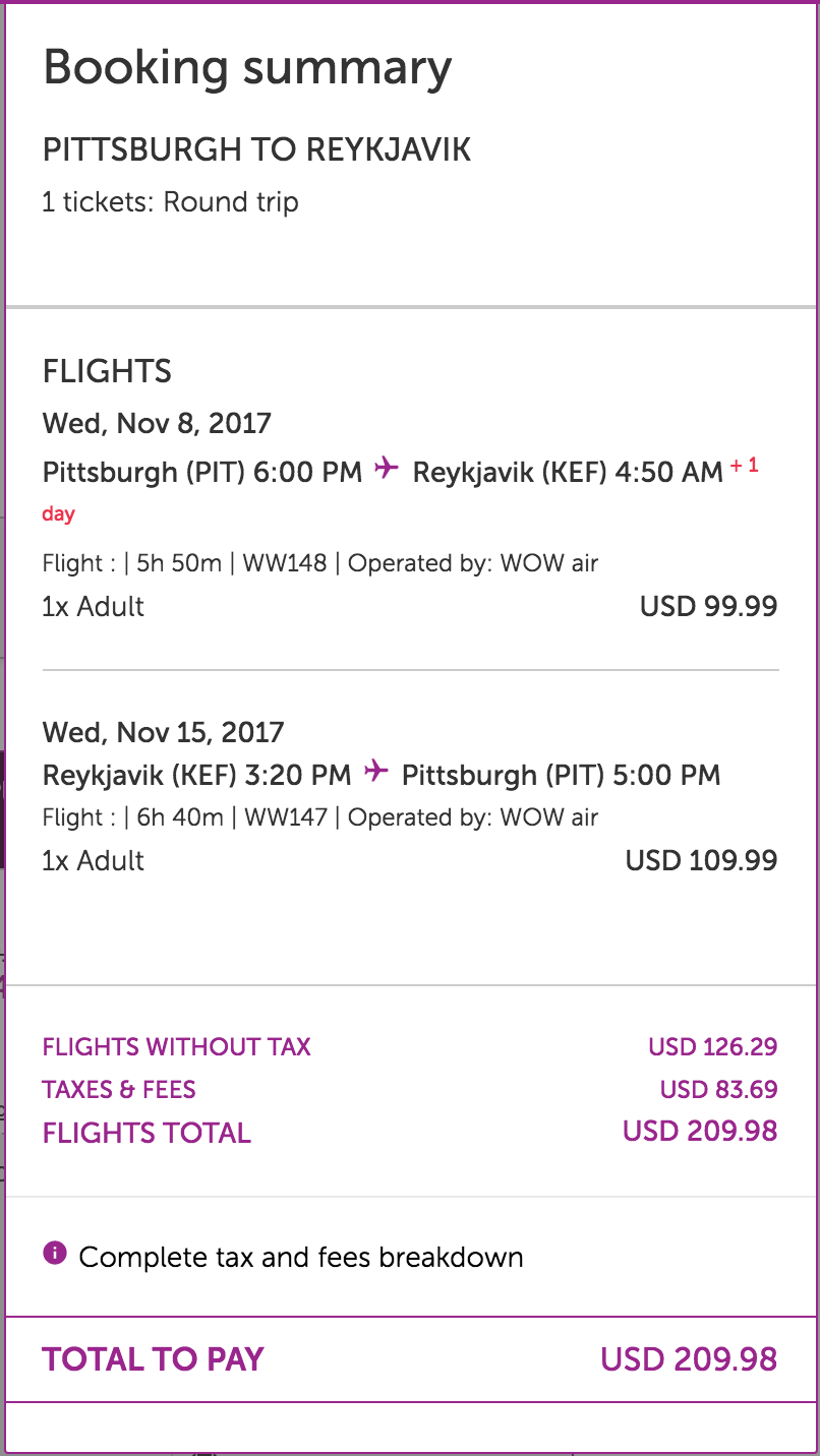Pittsburgh (PIT) to Reykjavik (KEF) for $210 round-trip: