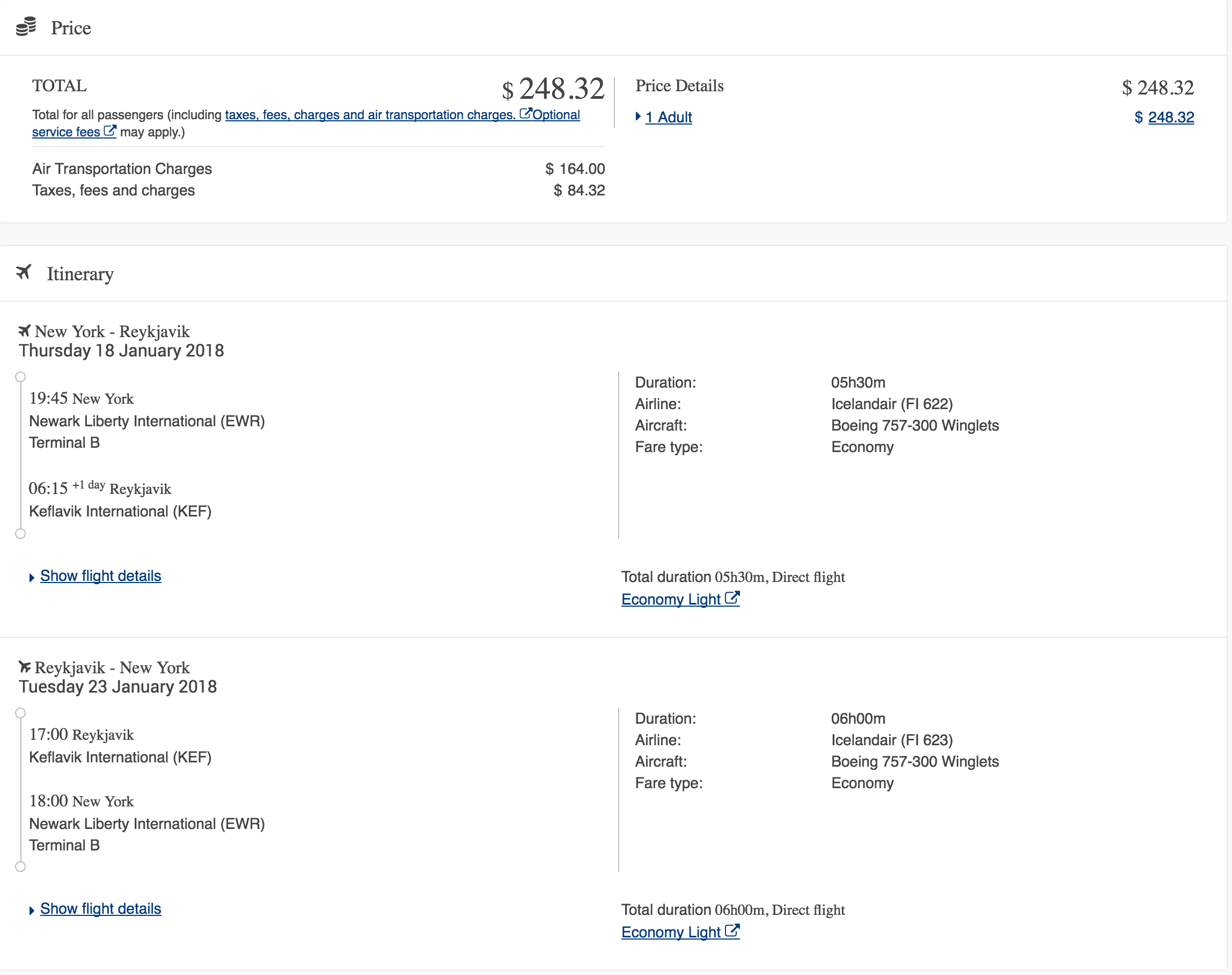 Newark (EWR) to Reykjavik (KEF) for $248 round-trip on Icelandair: