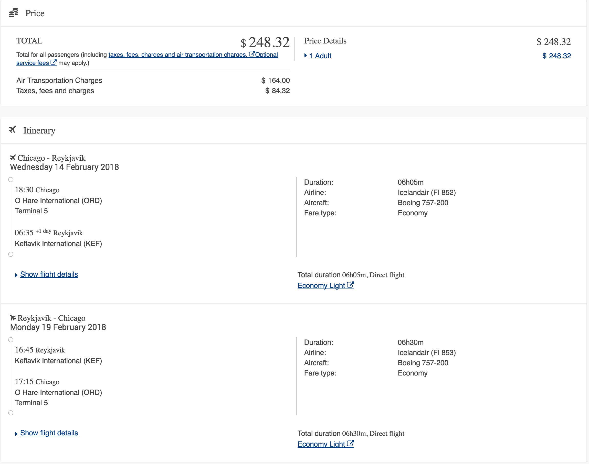 Chicago (ORD) to Reykjavik (KEF) for $248 round-trip on Icelandair: