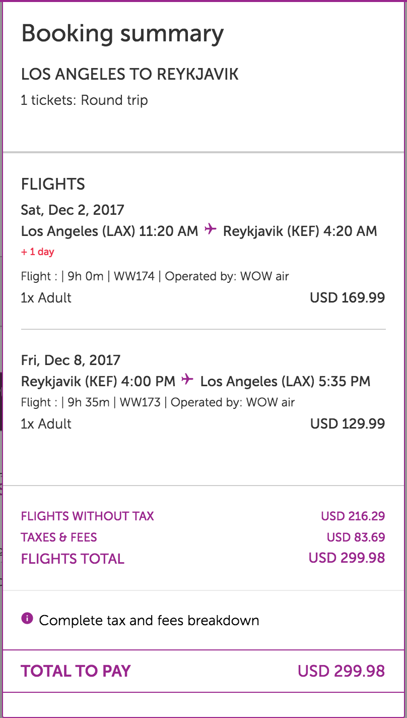 Los Angeles (LAX) to Reykjavik (KEF) for $300 round-trip: