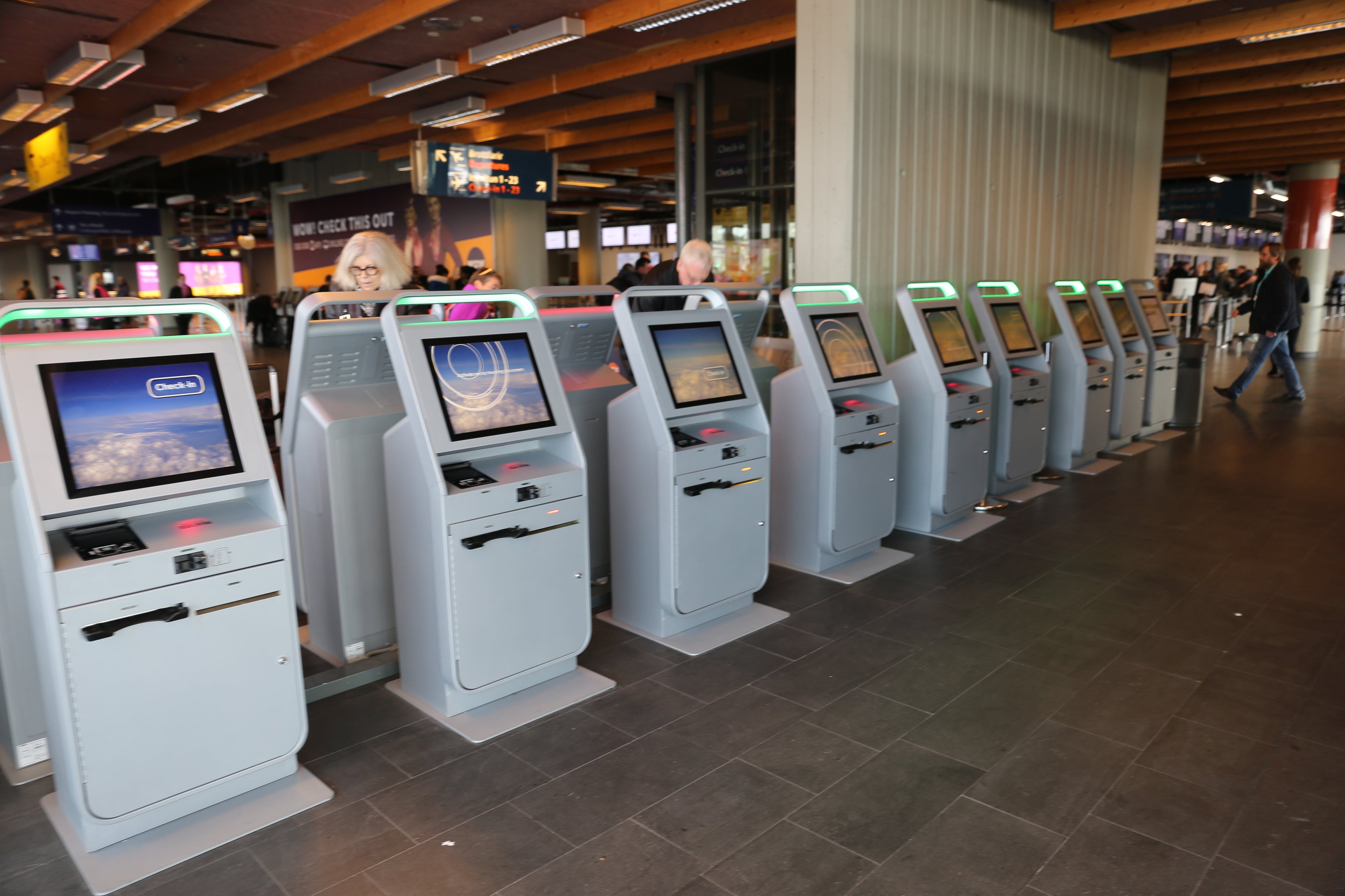If you're heading to the airport from downtown Reykjavik, I would definitely recommend taking a bus. Cabs from the city center are notoriously expensive — sometimes over $100 — and many of the buses will pick you up from or near your hotel. I chose to go with FlyBus, which cost $28 for the one-way trip. This bus was equipped with free Wi-Fi and dropped me off right at the terminal. I didn't have to check a bag, so I checked in at a self-service terminal and was able to change my seat and print out my ticket.