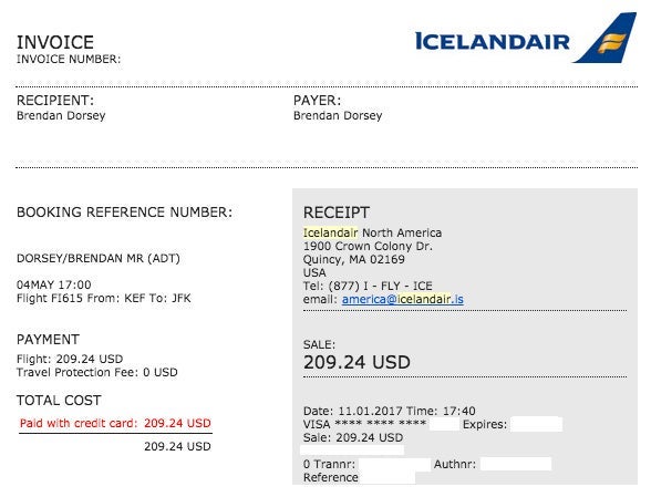 My one-way flight on Icelandair from Reykjavik to New York was relatively cheap, at just $209. I used my Chase Sapphire Reserve to pay for it, which let me earn 3x points — or in this case, 627 Ultimate Reward points, worth about $14, according to TPG's most recent valuations — for the travel purchase. Alternatively, I could have booked with The Platinum Card from American Express, which would have given me 5x points on all flights booked directly through the airline, and would have netted me 1,045 Membership Reward points, worth about $20.