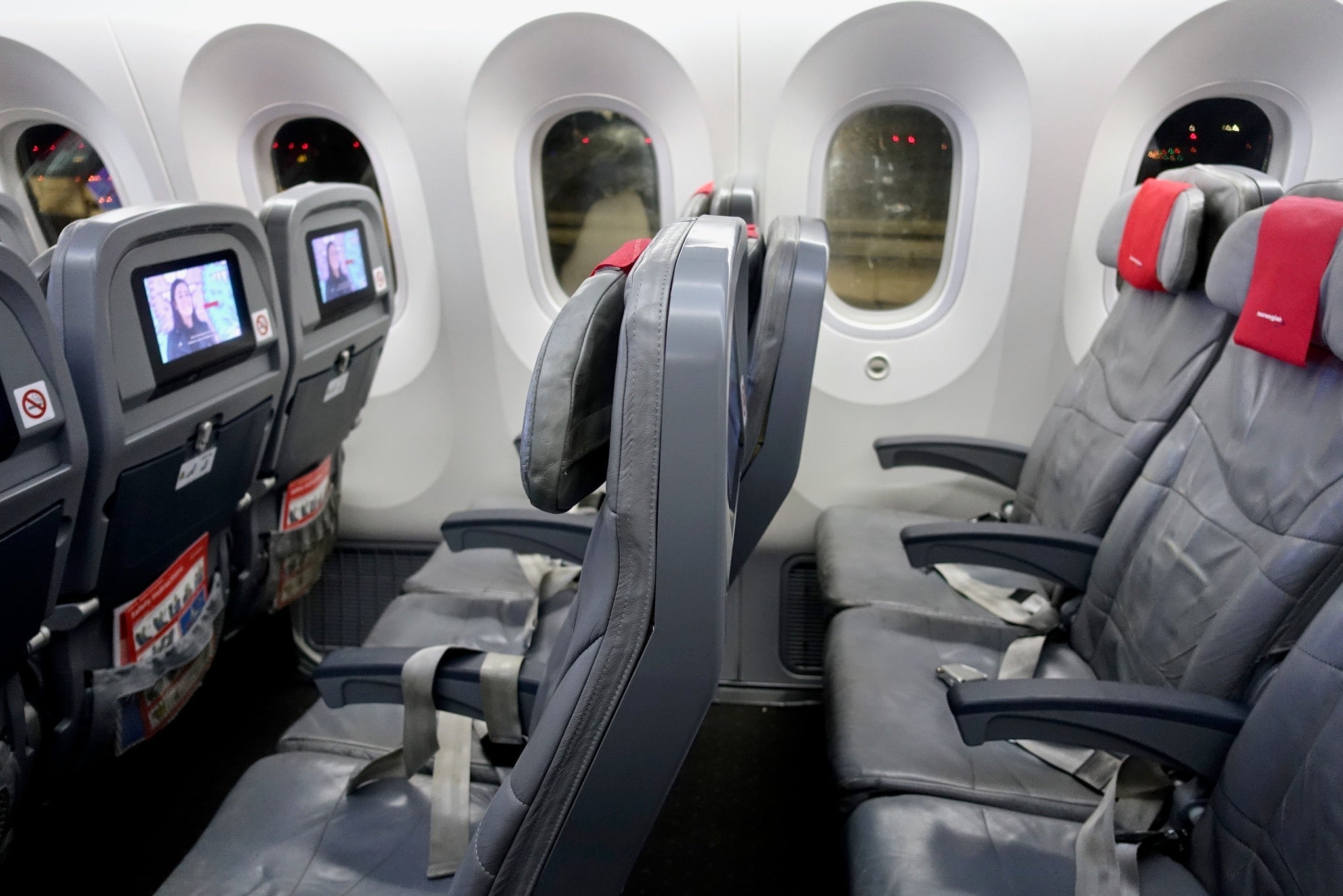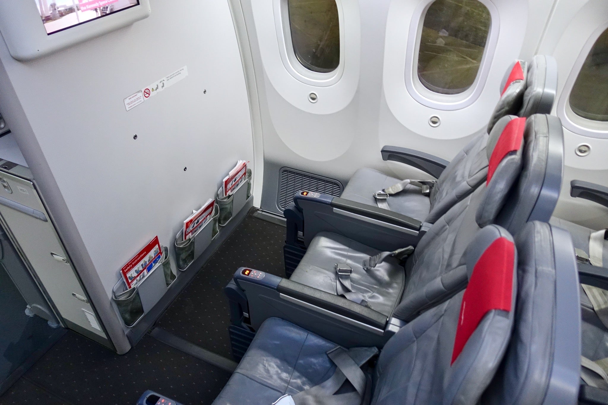 There were 259 seats in economy, arranged in a 3-3-3 configuration, standard for Dreamliners.