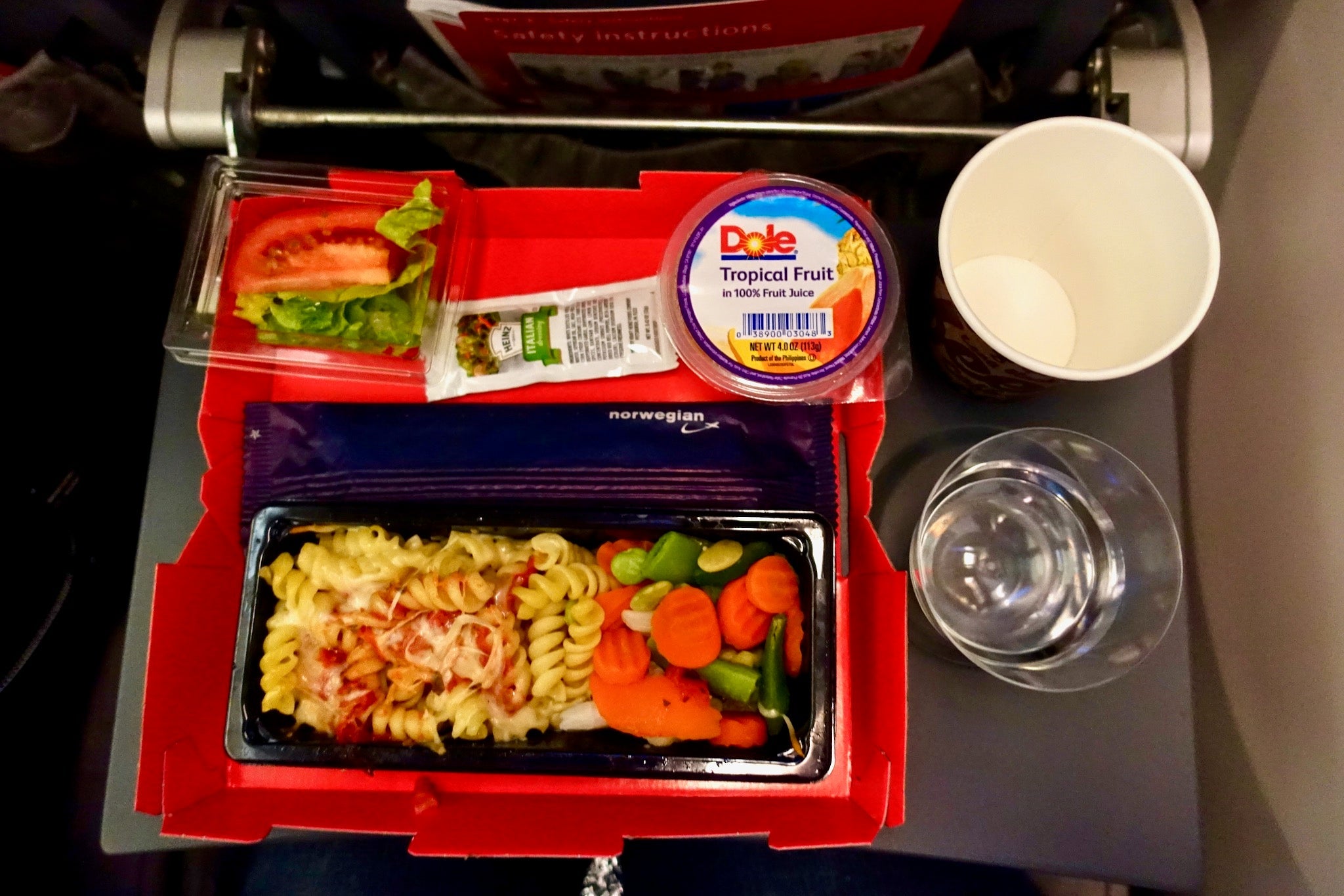 My LowFare+ ticket included two complimentary meals — a hot dinner followed by a cold breakfast. Since I didn't have a positive experience with Norwegian's catering on my last trip, I figured that my safest option would be to preorder a vegetarian meal. Although Norwegian's kosher meals receive a lot of praise, I would've needed to pay extra had I wanted one, and I wasn't prepared to do that — it was still economy-class airplane food, after all.
