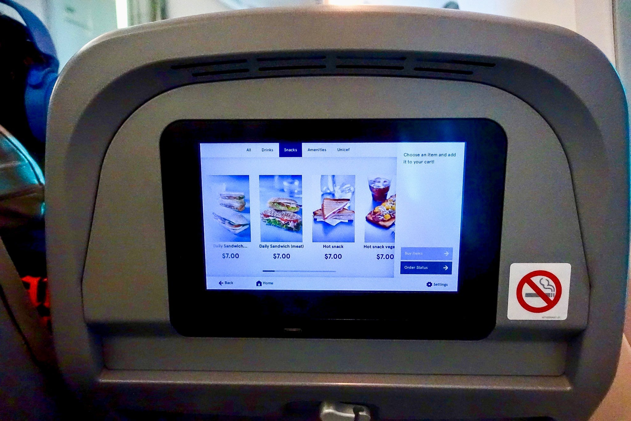 Between meals, snacks and drinks were available for purchase through the IFE system. Most nonalcoholic drinks cost $3, while sandwiches cost $7. Cups of water were available for free, but only if you asked a flight attendant directly.