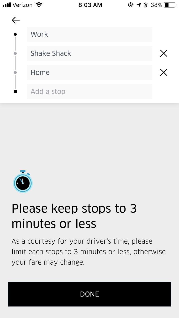 If you're planning on making use of the multi-stop feature, be prepared to pay a bit more. Because Uber calculates its fares based on time and distance, and since stops will take up more time, expect to have a higher fare. In addition, the fare you get is calculated for a stop to take three minutes or less. If your stop takes more than three minutes, Uber says that your fare may change.