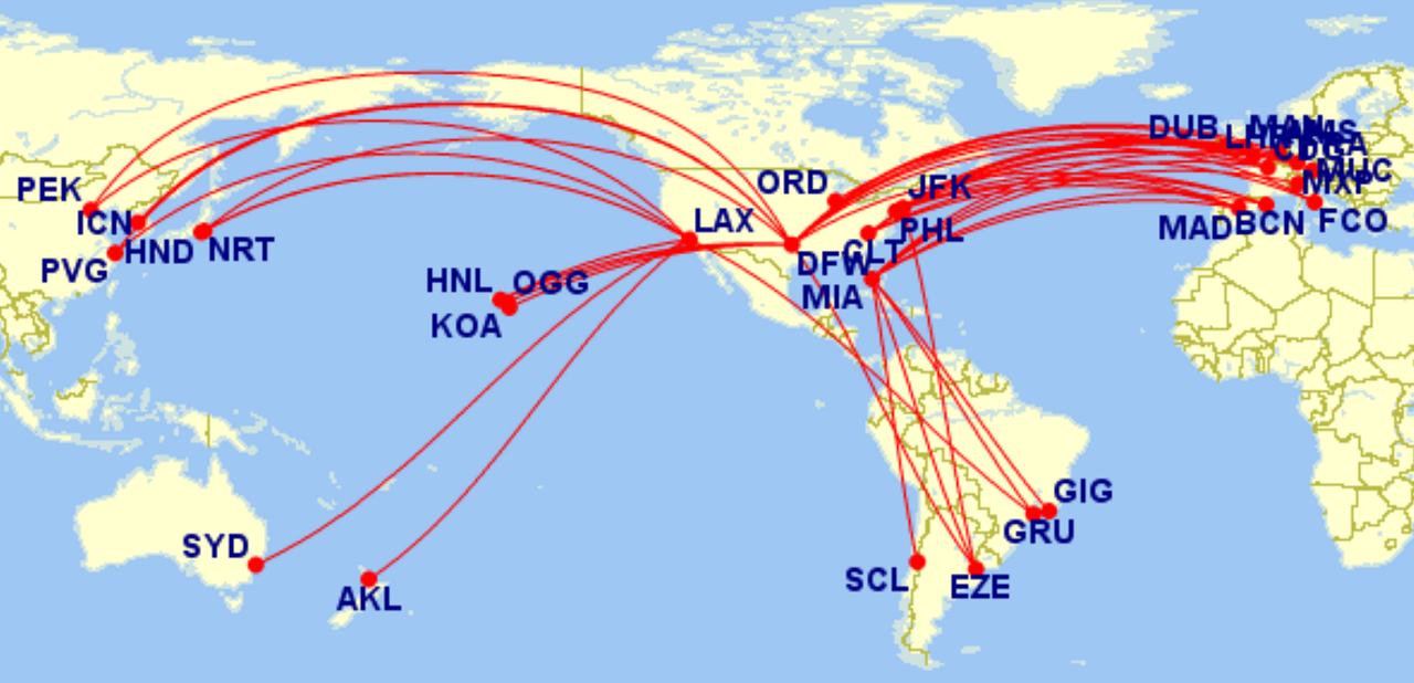 But that's not slowing the airline's introduction of premium economy to routes all across its network. To give you an idea of just how widespread premium economy has become, here are the routes on which American is currently selling premium economy service: