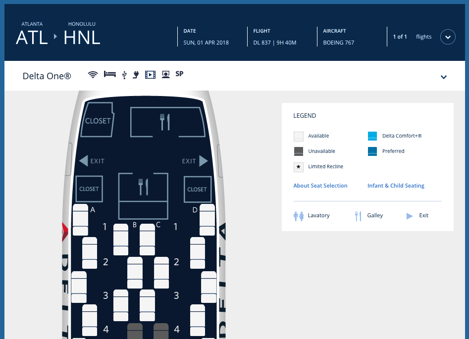 Beginning April 1, 2018, however, the airline will be adding lie-flat Delta One on select flights between the following airports. Note that while it seems like the rollout of the new Delta One flights isn't totally complete yet, we're seeing Delta One seat maps and branding for the routes below on Delta.com: