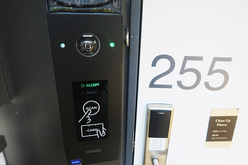 In keeping with the hotel's focus on technology, the doors could be opened with facial-recognition software. The first time we entered, we could opt into this system by touching our keys to a sensor and registering our faces, which would let us open the door at the touch of a button from then on.