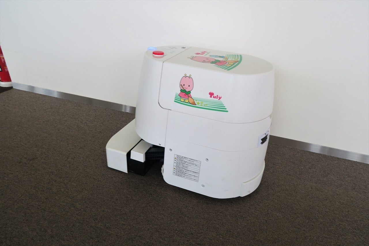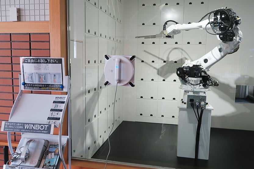 A Winbot window-cleaning robot cleaned the windows of the lobby.